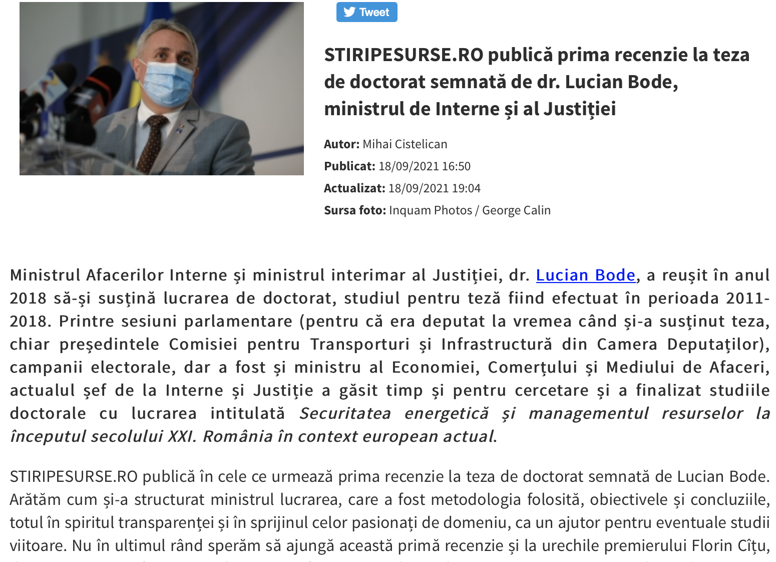 - Lucian Bode reprezintă în acest moment două portofolii: Internele şi Justiţia, şi asta înseamnă foarte mult pentru acest moment punctual;