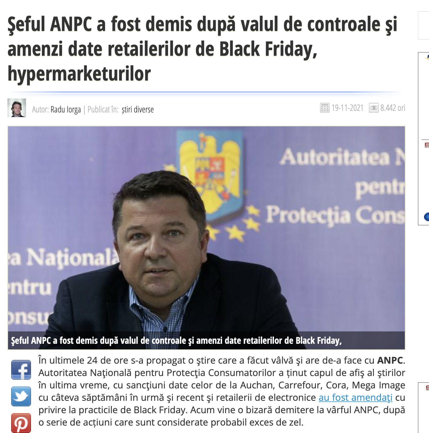 Recent, șeful ANPC Claudiu Dolota fost destituit și înlocuit cu altă pilă politică. În media românească și pe social media, șeful ANPC demis s-a smiorcăit că ar fi fost scos de pe post la presiunea multinaționalelor, vezi Doamne, pentru cât de curajos a fost el în lupta cu corporațiile. Nici vorbă de așa ceva!