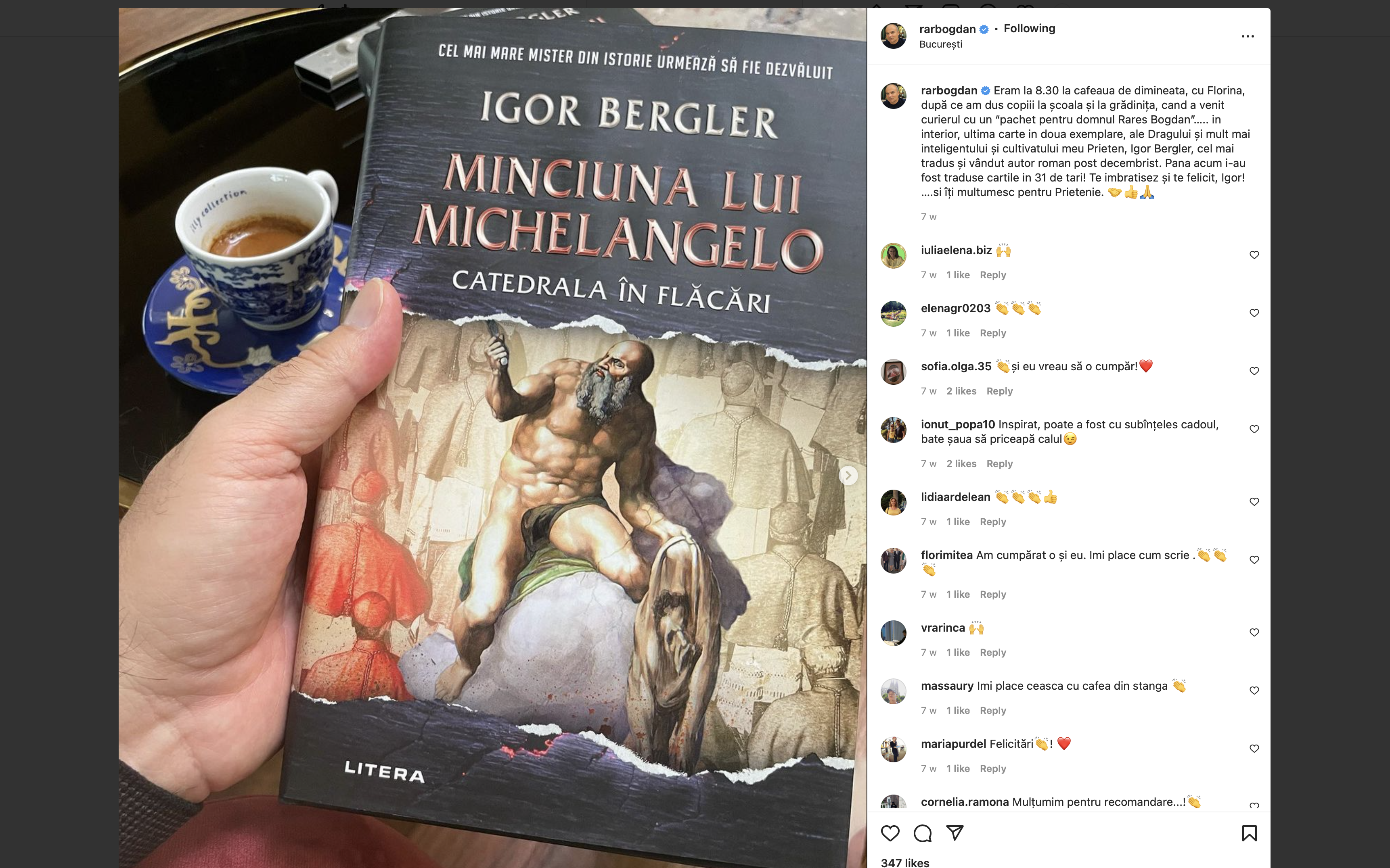 Rares Bogdan s-a mutat pe Instagram, unde nu se vede asa de tare cat de rau cade in abis. Unde comentariile nu sunt atat de acide ca pe Facebook. Unde poate vorbi linistit despre minciunile oricui, chiar si ale lui Michelangelo.