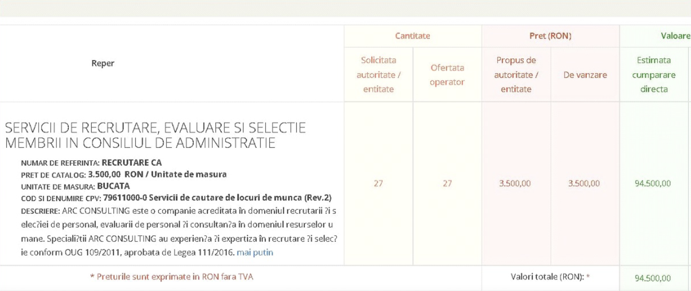 Spre exemplu, cea mai stridentă licitație este cea în valoare de o jumătate de milion de euro (2.626.532), câștigată de INTEGRAL TOP SOLUTIONS S.R.L., care se angaja să presteze pentru ANOFM servicii de publicitate.