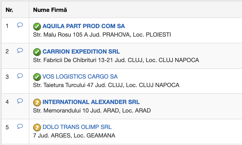 Aquila Part Prod Com este cel mai mare transportator rutier de mărfuri din România. Cifra sa de afaceri a fost în 2020 de peste 300 de milioane de euro, Aquila marcând profit istoric de 11,4 milioane de euro.