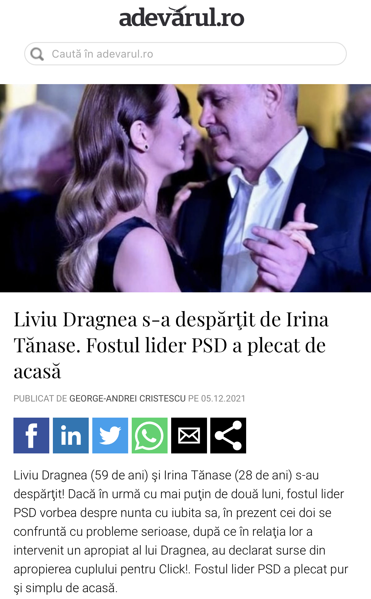 Ei bine, chiar la asta nu v-ați fi așteptat. După atâtea divorțuri celebre anul ăsta, despărțirea lui Liviu Dragnea de Irina Tănase este exact ce mai lipsea României în acest an tumultuos.
