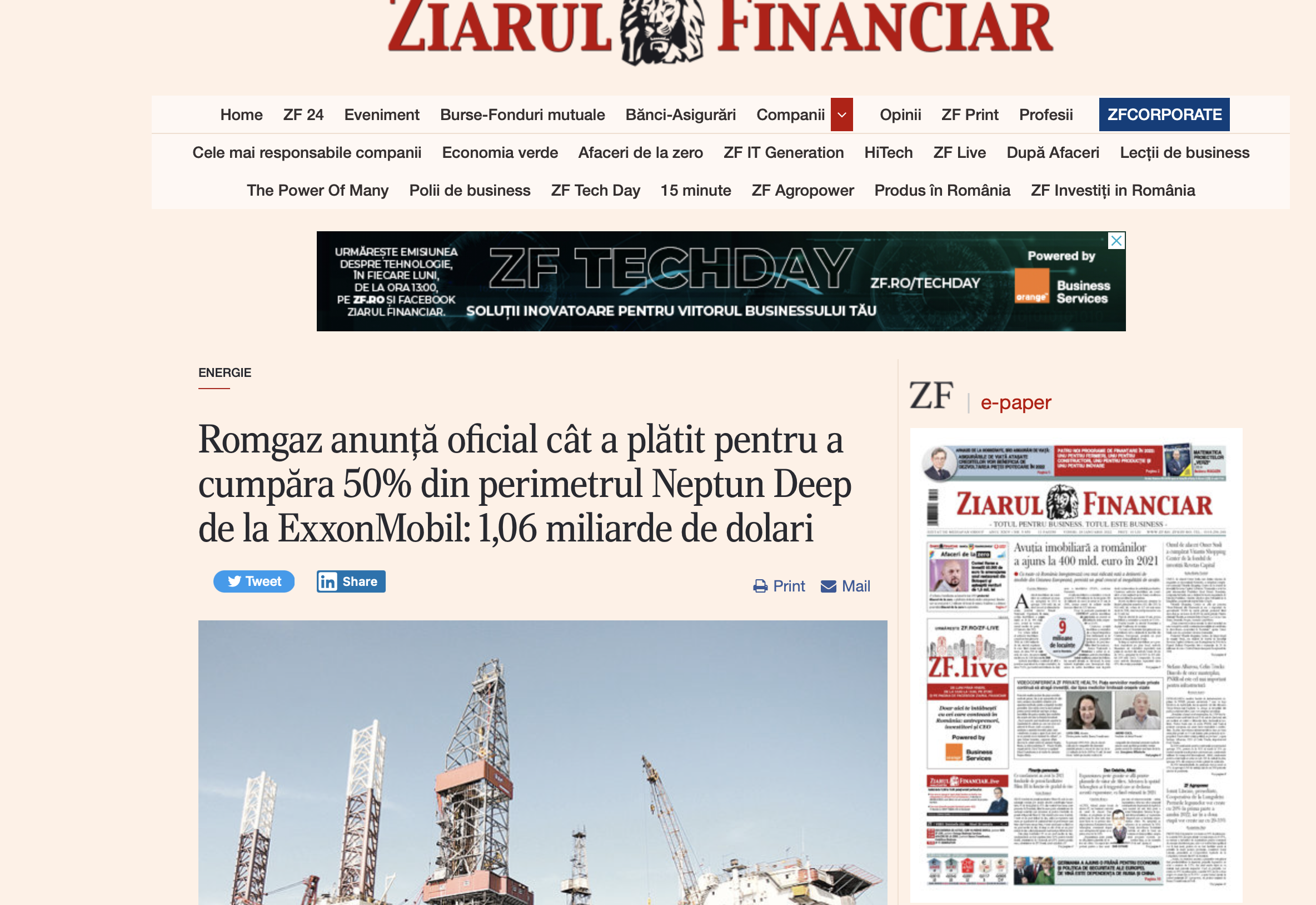 Romgaz, societatea unde statul român deține prin Ministerul Energiei puțin peste 70% din acțiuni, a cumpărat în noiembrie 2021, adica recent, 50% din concesiunea și dreptul de exploatare a platformei denumită acum Neptun Deep. Un miliard de dolari.