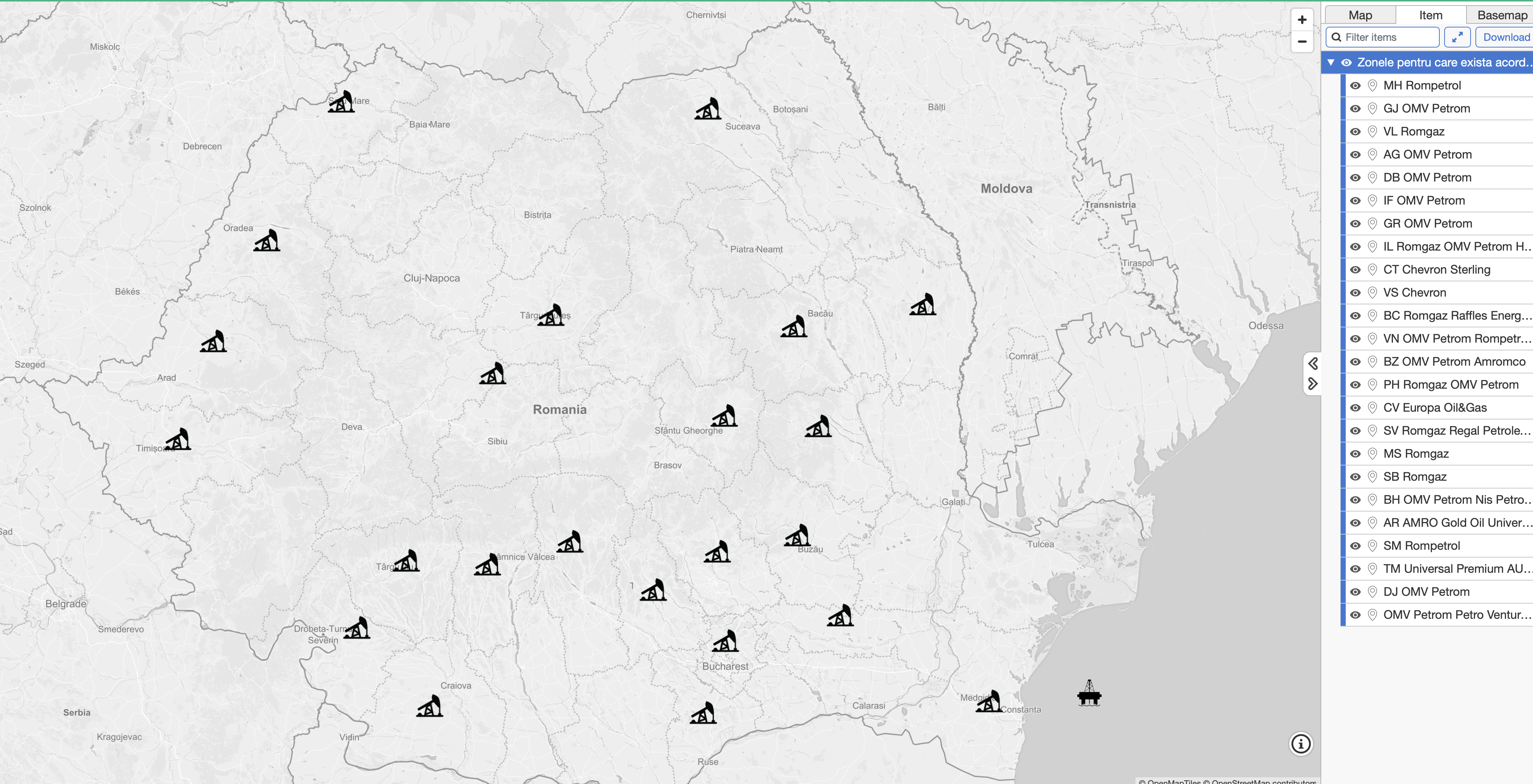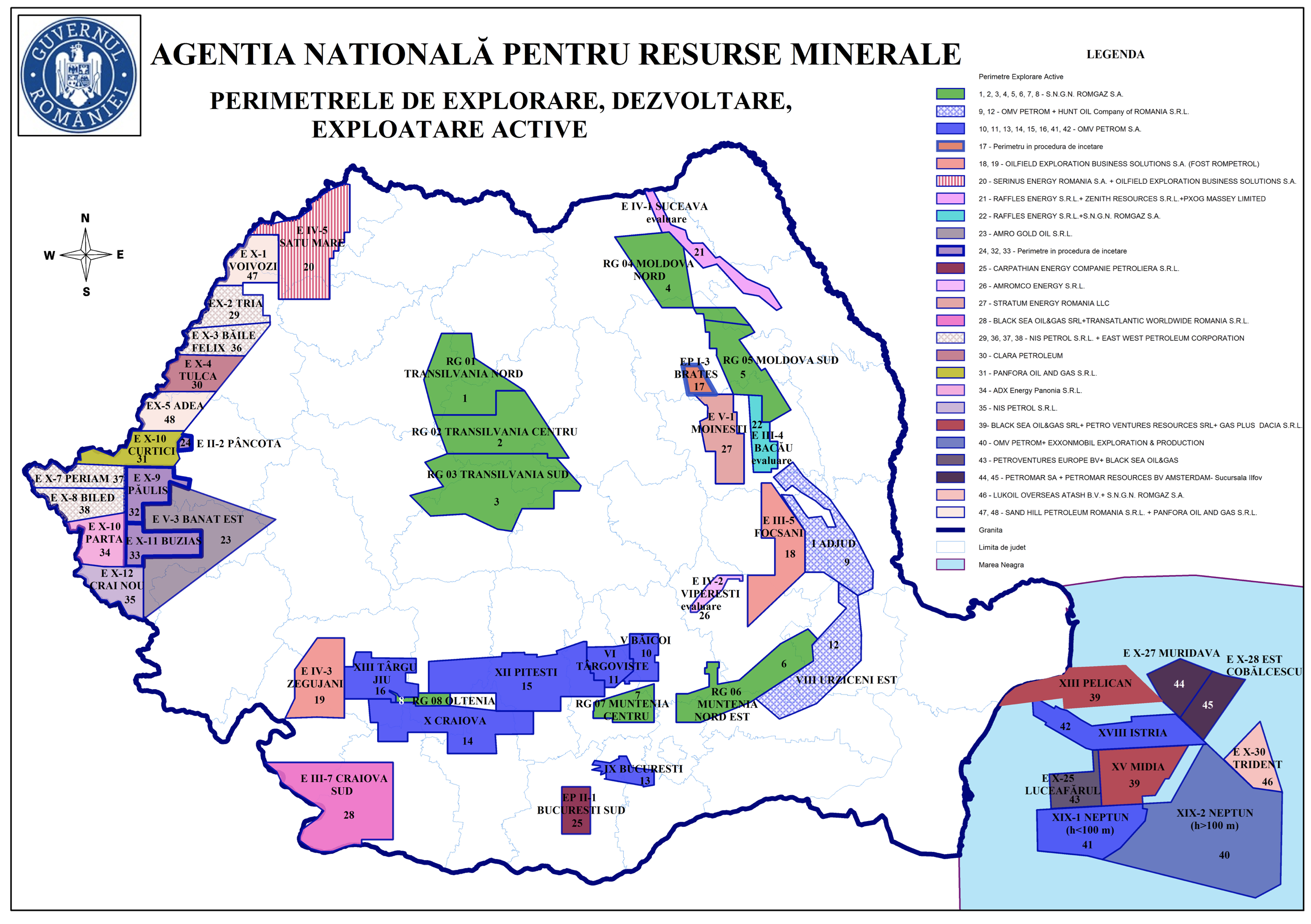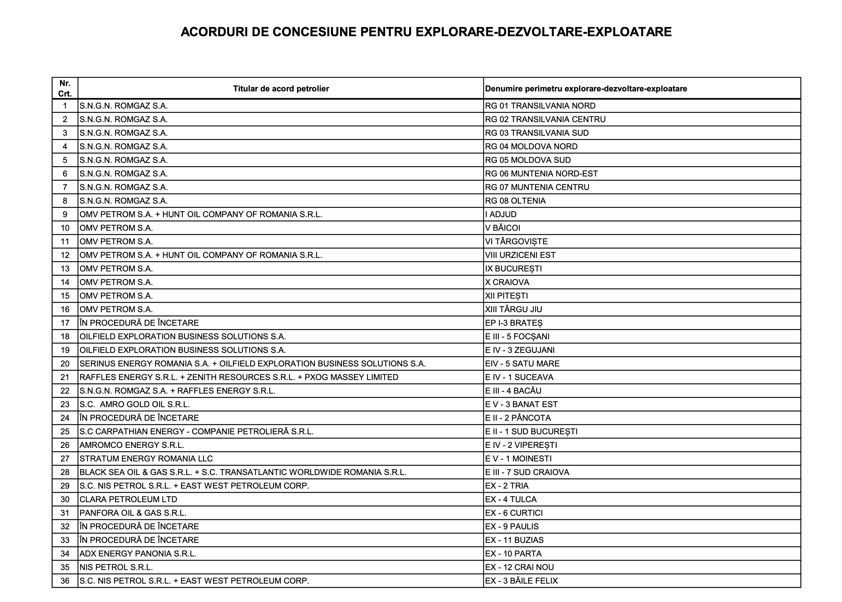 Zonele pentru care exista acorduri de explorare si exploatare de hidrocarburi si firmele care detin licente
