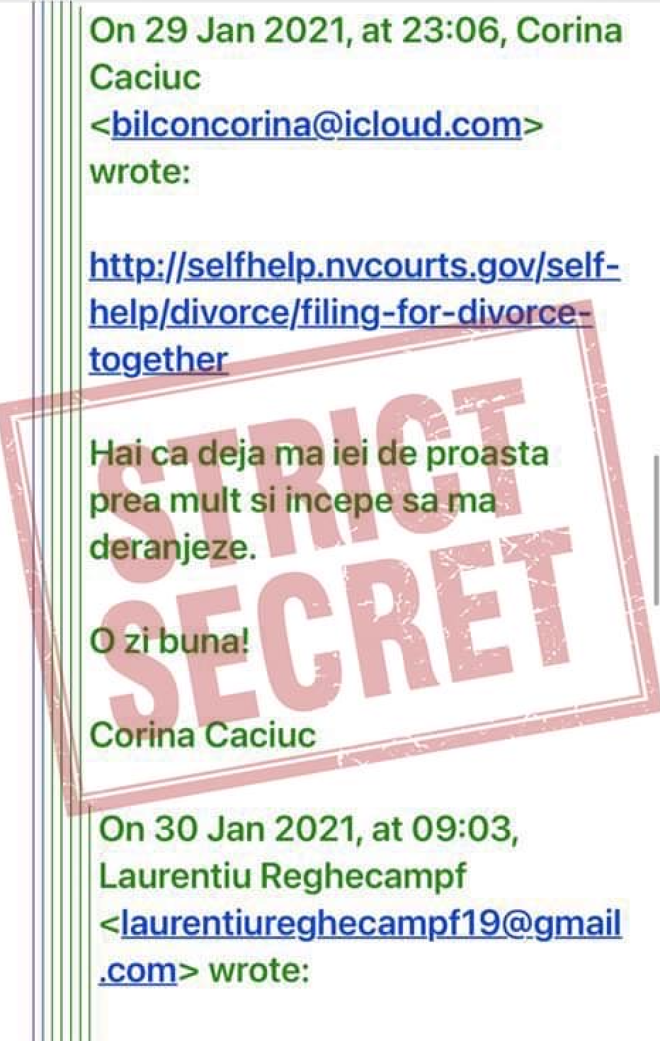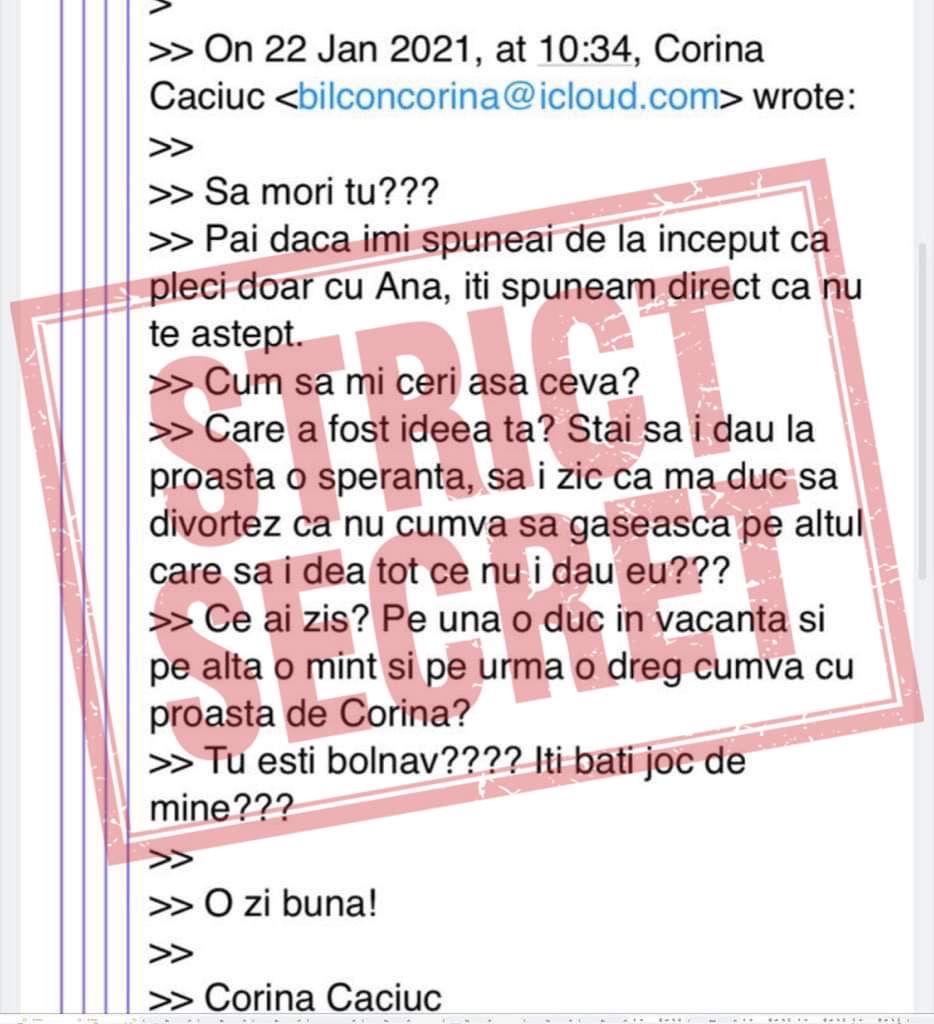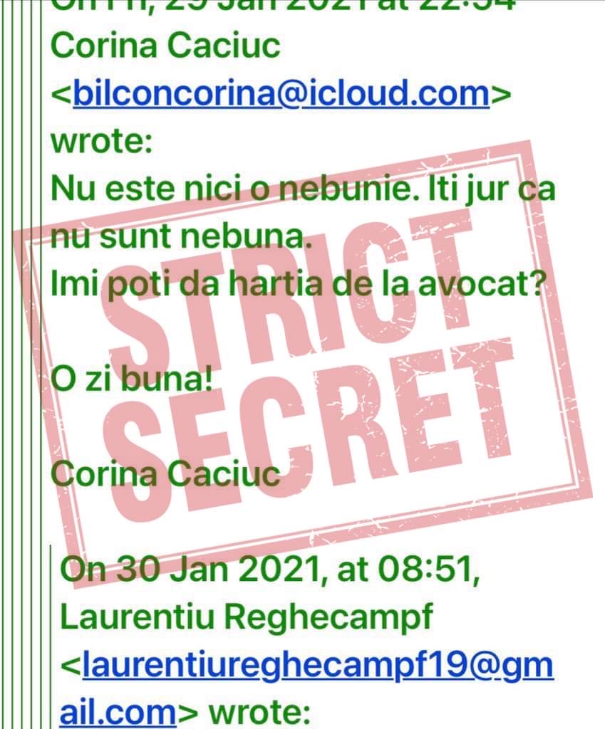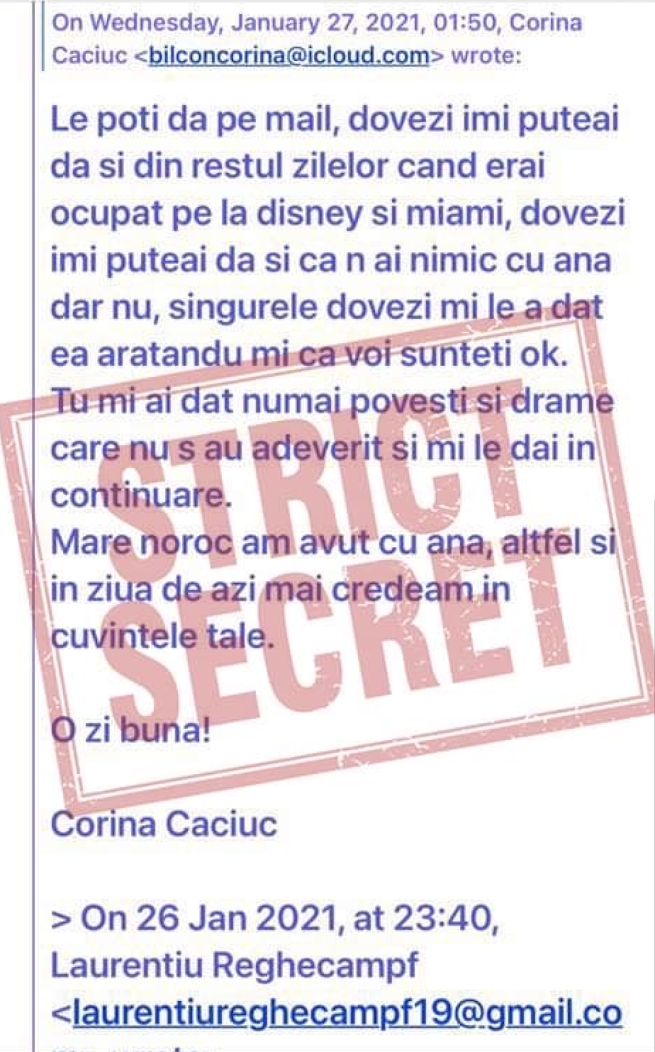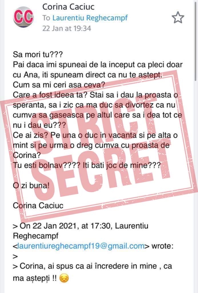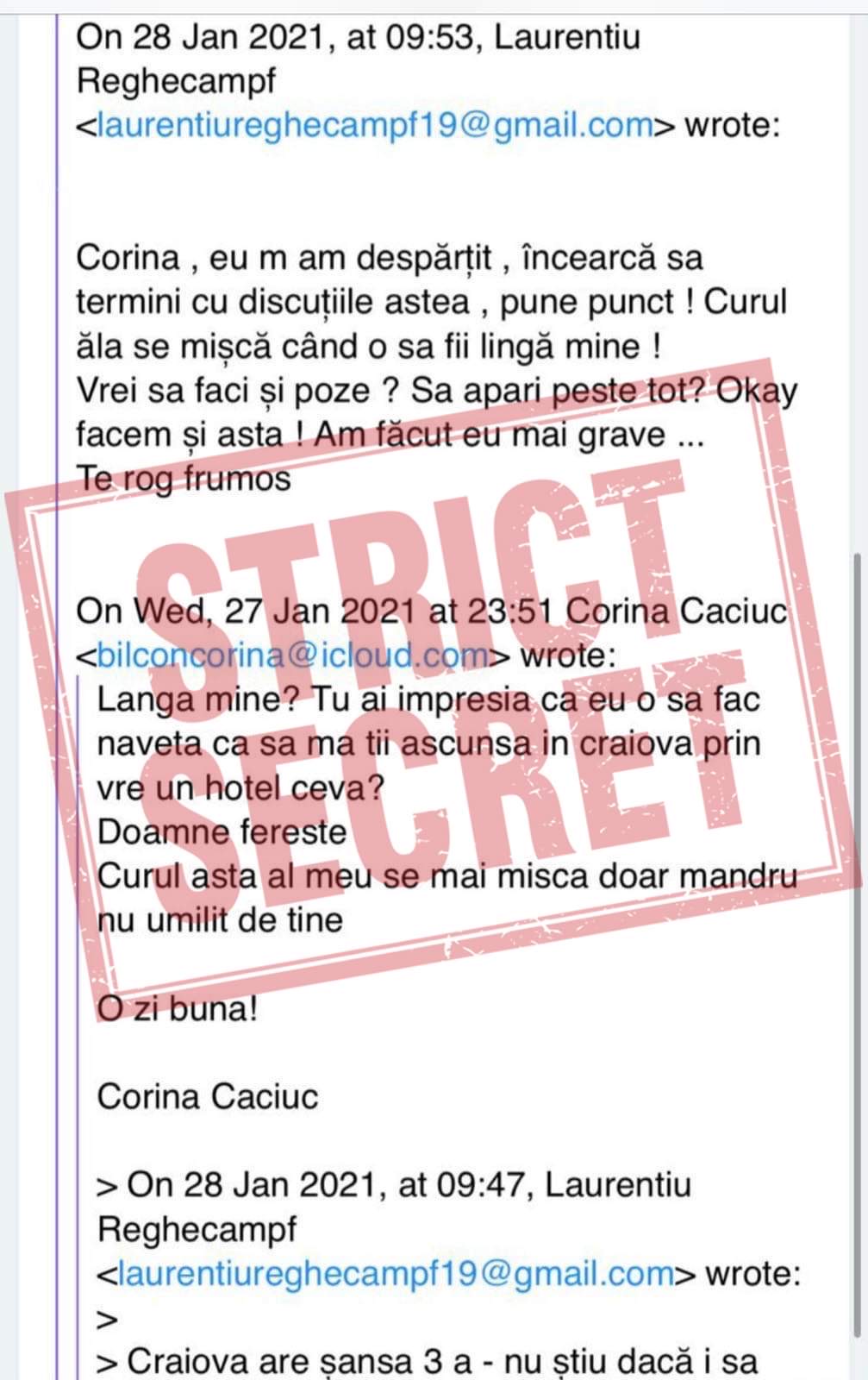 Citind emailurile, impresia mea e că nu Caciuca e de vină pentru situația creată, ea a acționat ca o viperă fomista, presând și presând mereu la prohabul lui Reghecampf. De vină e chiar Laurențiu Reghecampf, care s-a comportat ca o servitoare, aruncându-și familia ca pe o măsea stricată.