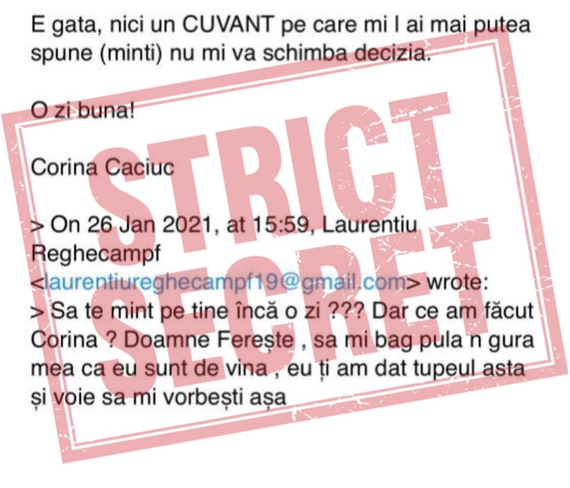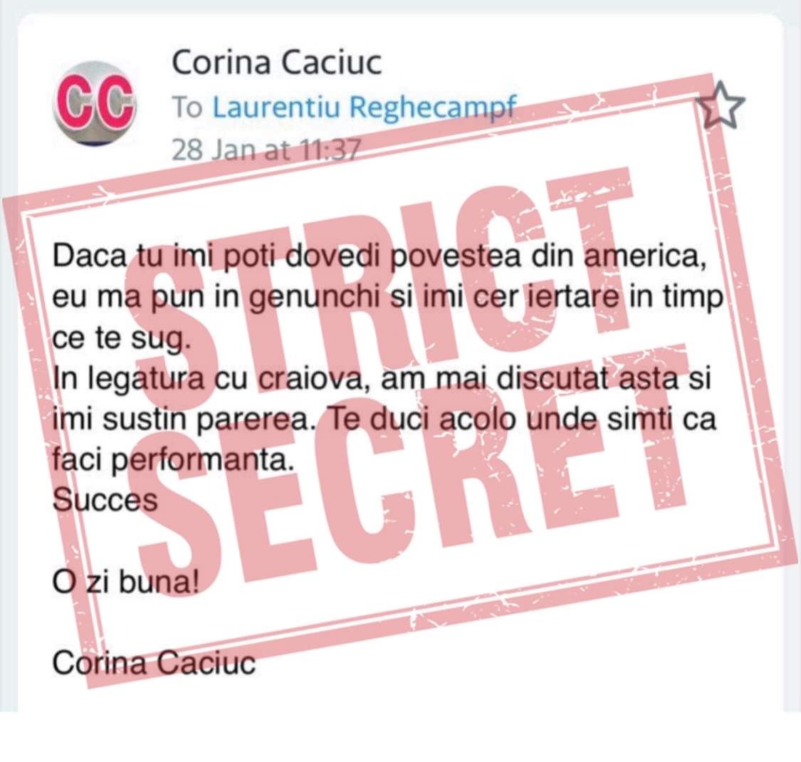 Dacă tot am devenit experți în scandalul Reghe-Prodanca, haideți să ducem dezvăluirile despre acest caz la un alt nivel. Astăzi, vom publica în exclusivitate emailurile de la începutul anului 2021 dintre antrenorul Reghecamp, la acea vreme foarte căsătorit și mincinos, și amanta Corina Caciuc, o fetiță disperată provenind din sărăcăcioasa Hunedoara, dornică să pună ghearele acrilice pe banii lui Reghe.