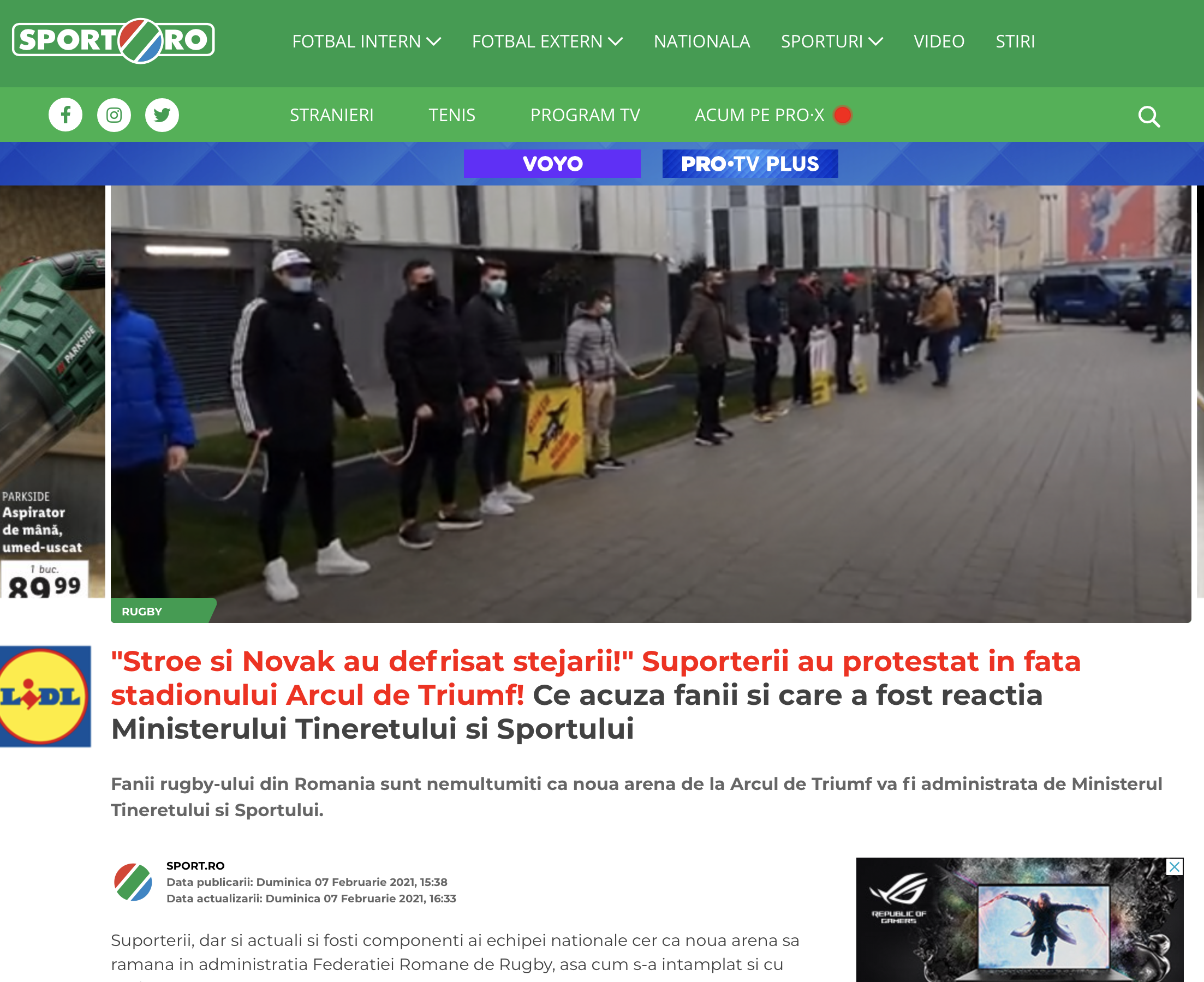 Nimeni nu s-a întrebat care este adevărul în privința scandalului declanșat la începutul anului, îndreptat împotriva ministrului Tineretului și Sportului, Eduard Novak, care a fost acuzat de fanii rugbyului că dorește distrugerea acestui sport doar pentru faptul că Novak nu a dorit să dea înapoi Federației Române de Rugby, condusă de Alin Petrache, Stadionul Arcul de Triumf. Acesta a fost modernizat de către Stat printr-o injecție de 40 milioane euro, efectuată prin intermediul Companiei Naționale de Investiții.