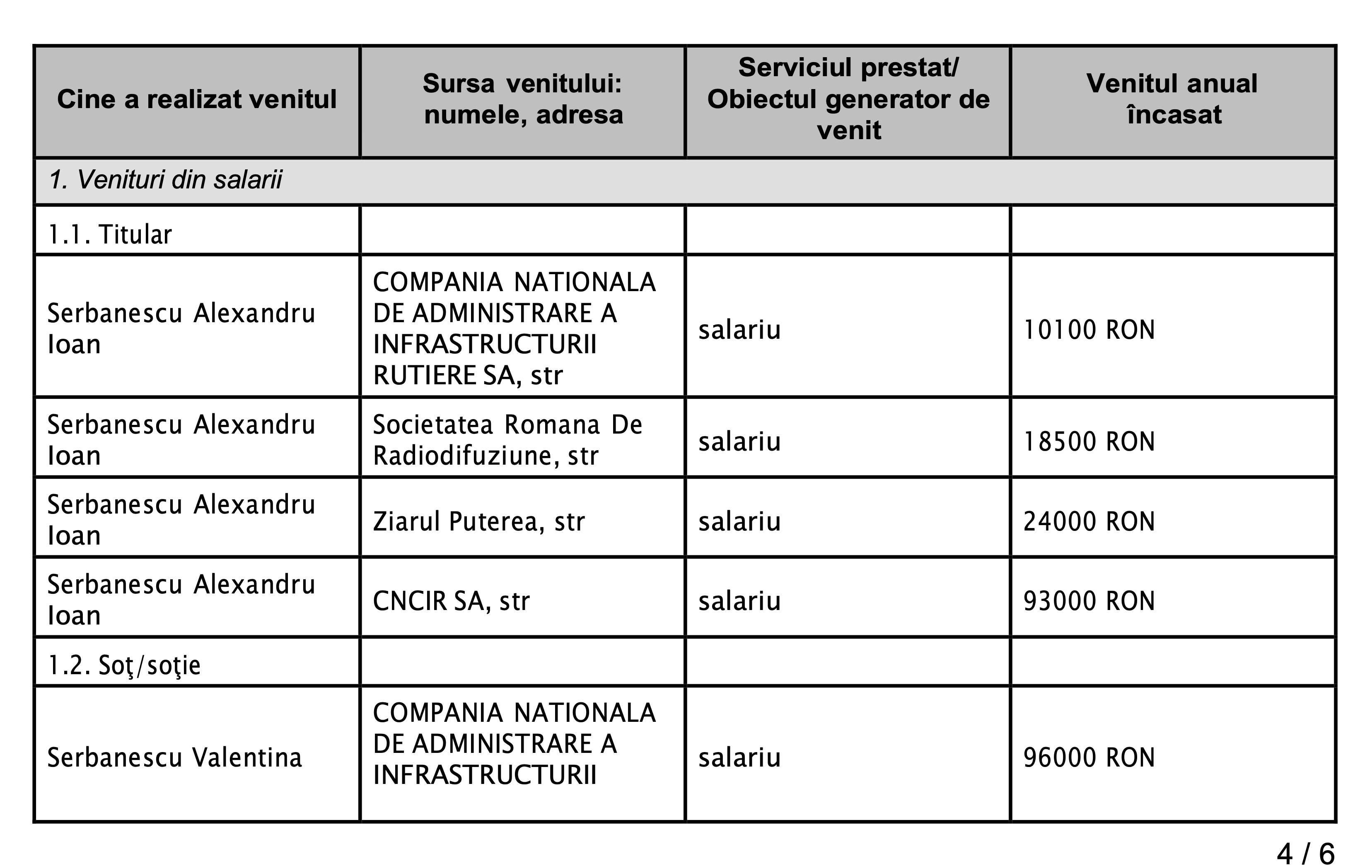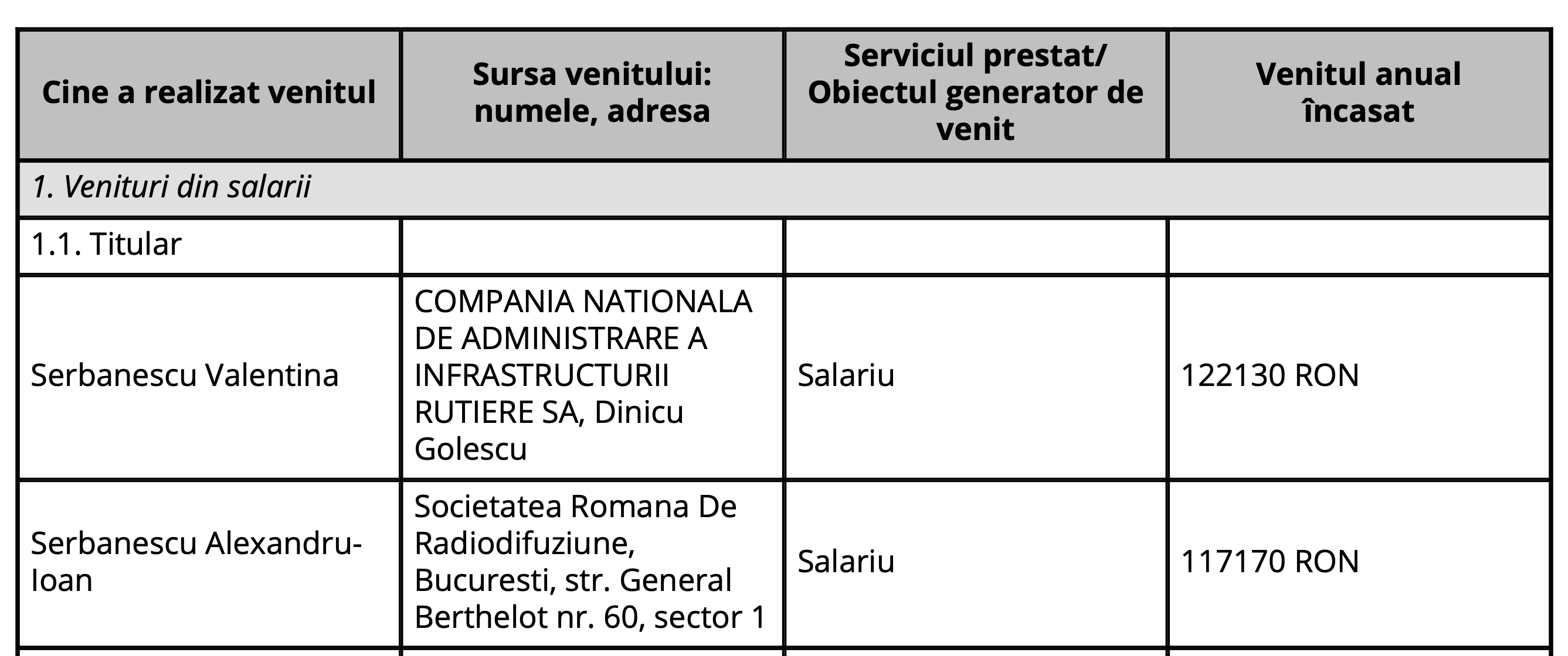 La CNAIR, unde este purtător de cuvânt domnul Alin Șerbănescu, lucrează și soțioara, Valentina Șerbănescu, fostă ziaristă fără glorie, ajunsă și ea o sinecuristă sadea în CNAIR, unde are o funcție importantă, anume de șefa Biroului Control-Integritate.