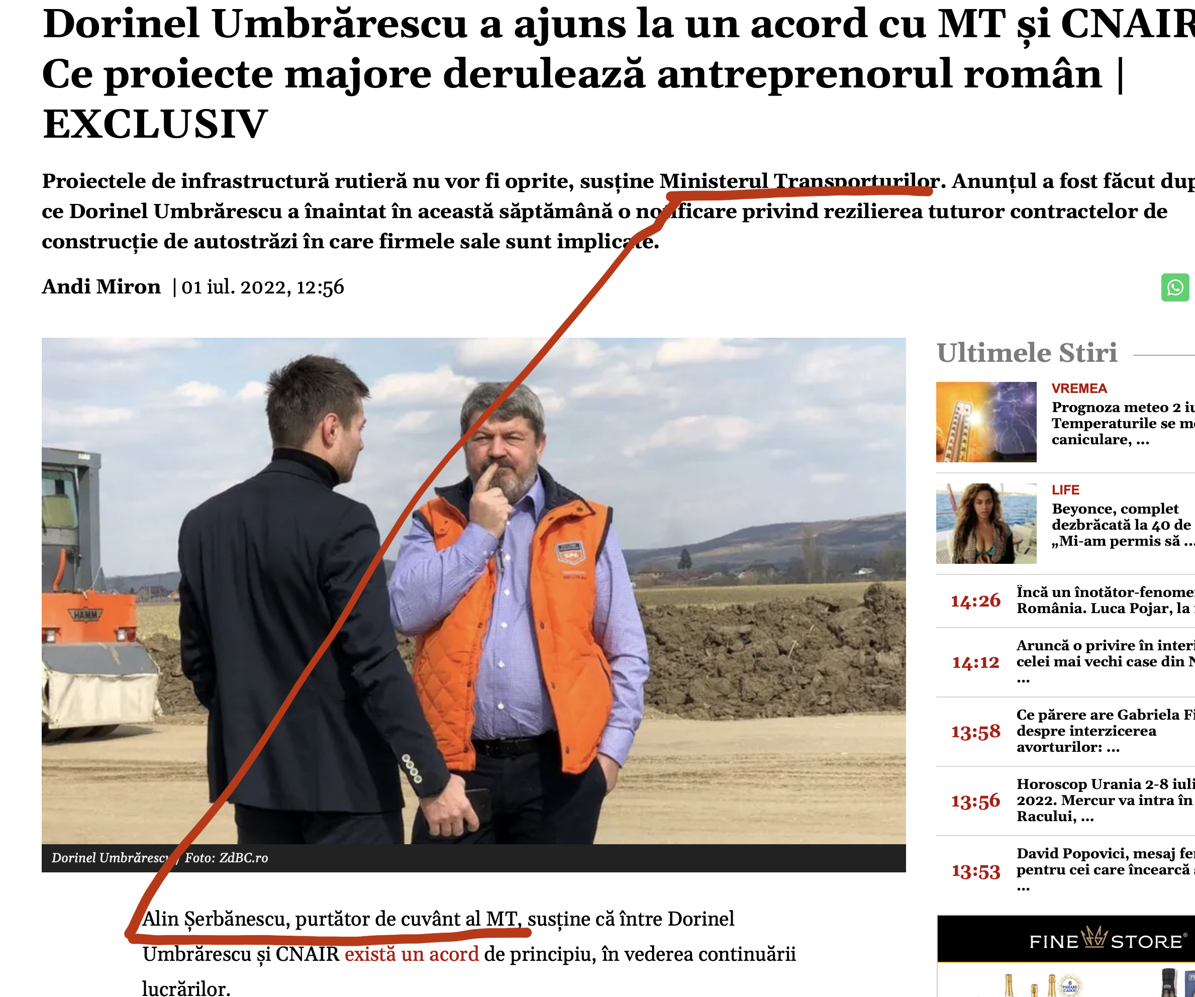 În fine, i-am cerut și actualului director al lui Umbrărescu, Sorin Scarlat, fost șef al CNAIR, să-l roage pe domnul Umbrărescu să ne dea un punct de vedere. Acesta s-a mărginit să ne ofere un comentariu diplomatic cu un ușor iz de ironie.