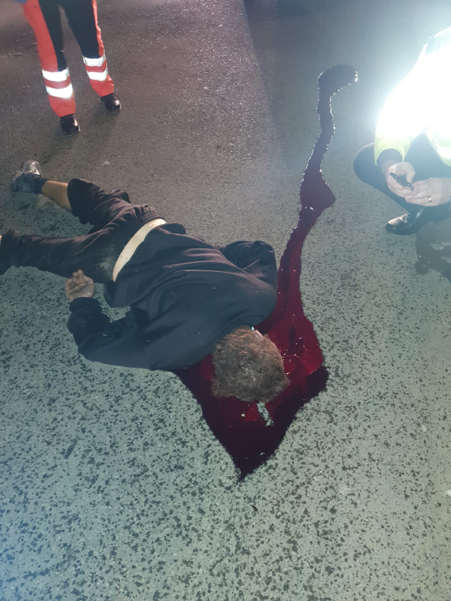Primul echipaj de intervenție ajuns a fost un echipaj SMURD la aprox 18.52 și, imediat după, un echipaj SAJ. La fața locului, s-a constatat faptul că victima prezența leziuni incompatibile cu viața ( traumatism cranio-cerebral cu dilacerare cerebrală și otoragie stânga) și s-a declarat decesul.