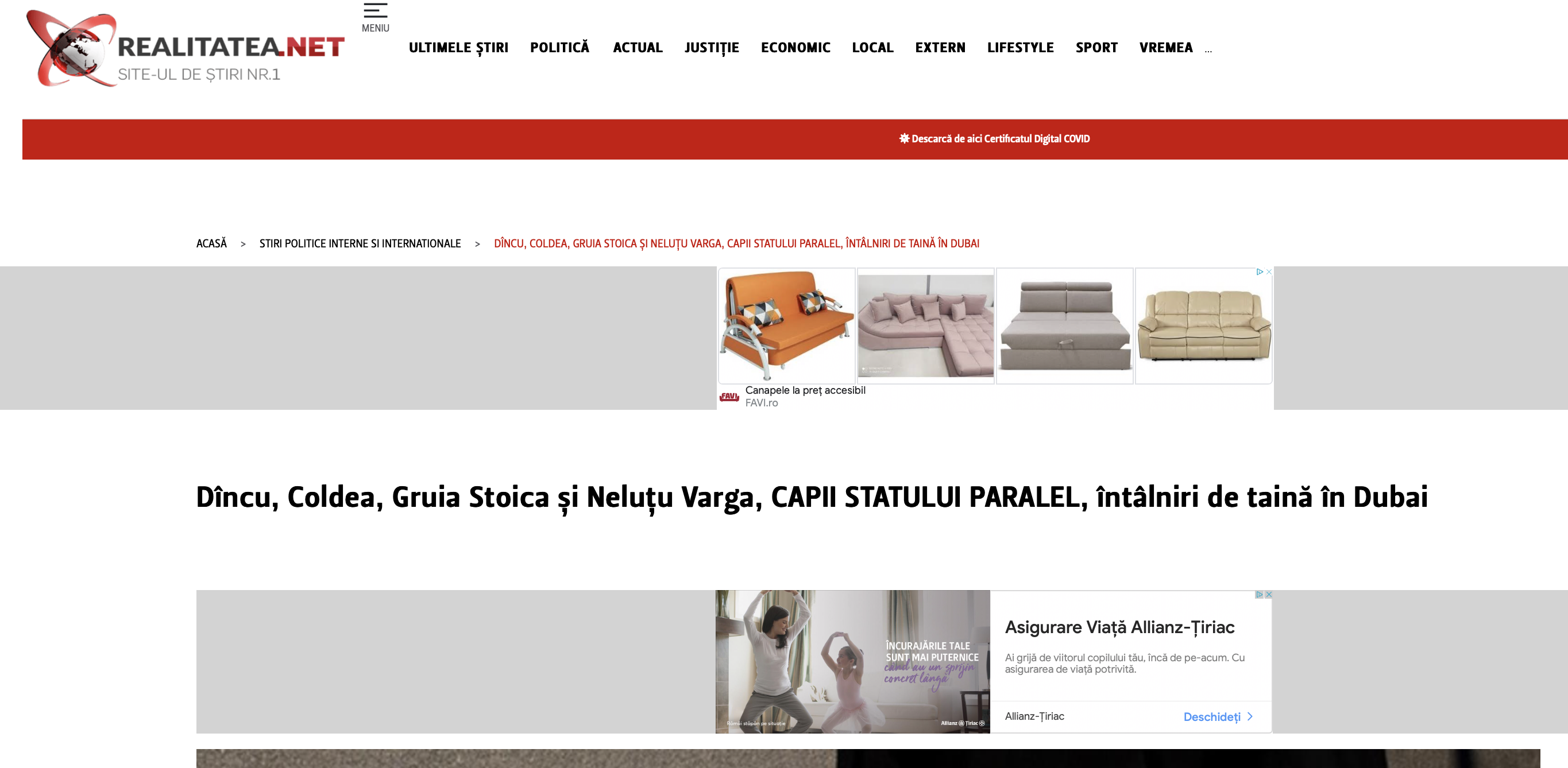 In martie 2021, Realitatea TV rupea normele cu o dezvaluire socanta, publicand informatia ca Vasile Dancu, presedintele Consiliului National al PSD, Florian Coldea, fostul boss al SRI, si Nelutu Varga, patronul clubului de fotbal al CFR Cluj, s-au intalnit in Dubai cu Gruia Stoica, milionar cu interese in caile ferate romane, pentru a-i "negocia" dosarele si problemele penale pe care le avea.