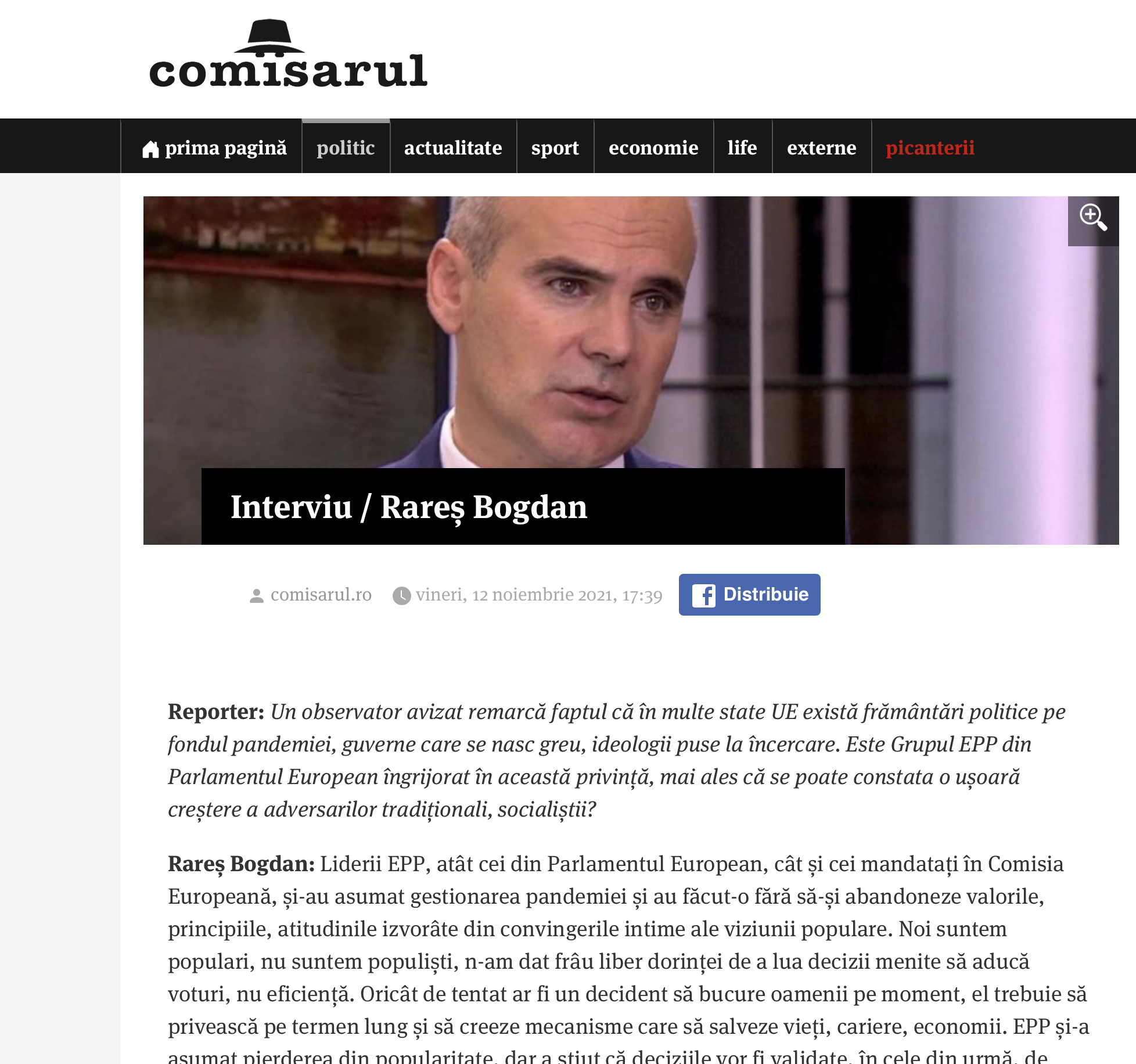 Ultima chestie absolut haioasa e ca site-ul Comisarul.ro a refuzat sa preia suturile in gura pe care i le-am dat, zicem noi, pe buna dreptate lui Rares Bogdan, pentru ca azi, dis de dimineata, sa vedem un "interviu" pe bani multi, europeni (ca nu da Rares din buzunar), un interviu de o penibilitate incredibila.