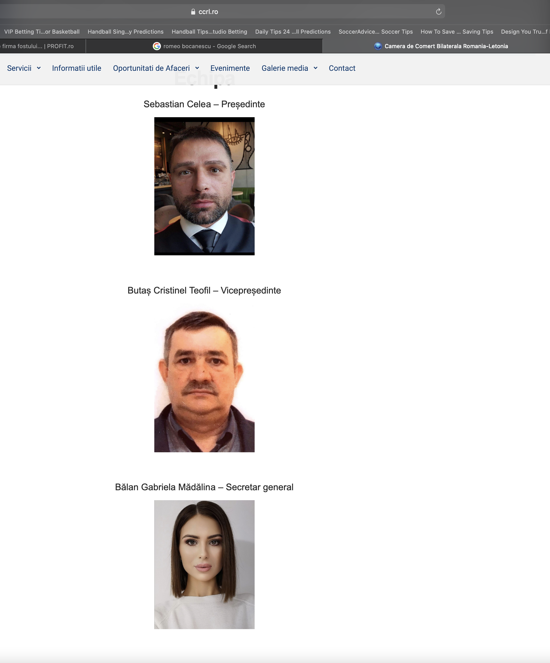 Pe site-ul „Camerei de Comerț” găsim la membrii board-ului, o botoxată pe numele său Balan Gabriela Madalina, despre care surse avizate spun că este omul de încredere al lui Celea. Atâta doar că și doamna Balan are un trecut infracțional elocvent împreună cu soțul ei, Alexandru Ion Balan, arestat o dată în iulie 2013 şi trimis în judecată în martie 2014 pentru evaziune fiscală de 1,5 milioane de lei, produsă prin firma de pază ASG Security Logistic.