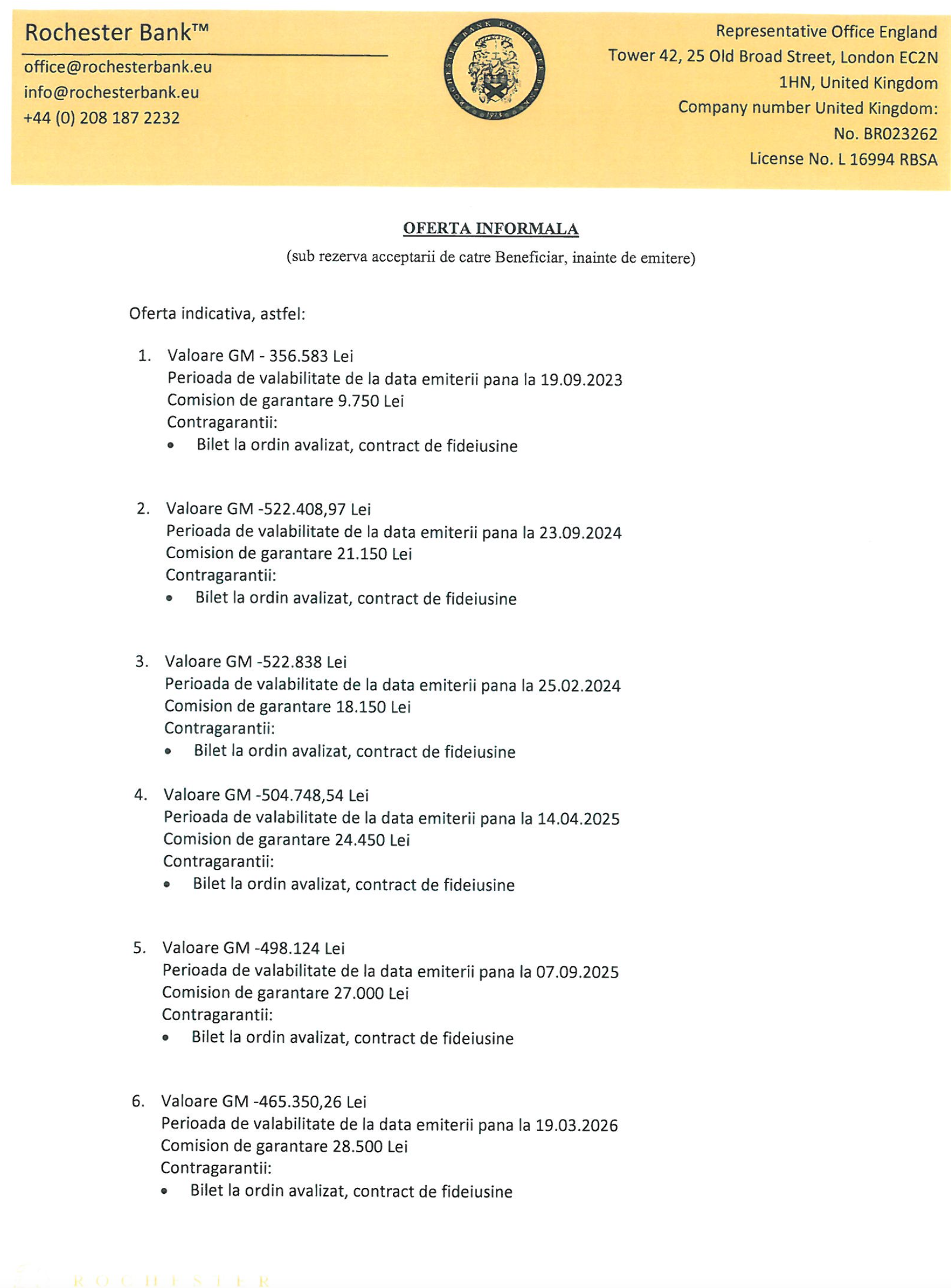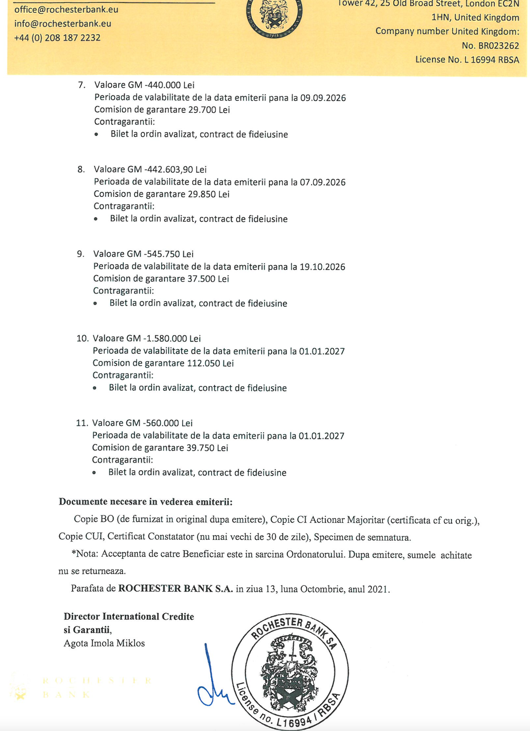 Pe hartiile astea trase la imprimanta color si o stampila de 20 de euro, teparii de la Rochester Bank emit scrisori de garantie false sau dau tepe persoanelor fizice, o doamna fiind escrocata cu 680 000 de euro, pe care i-a virat intr-un "cont personal" Rochester, care era o frauda!