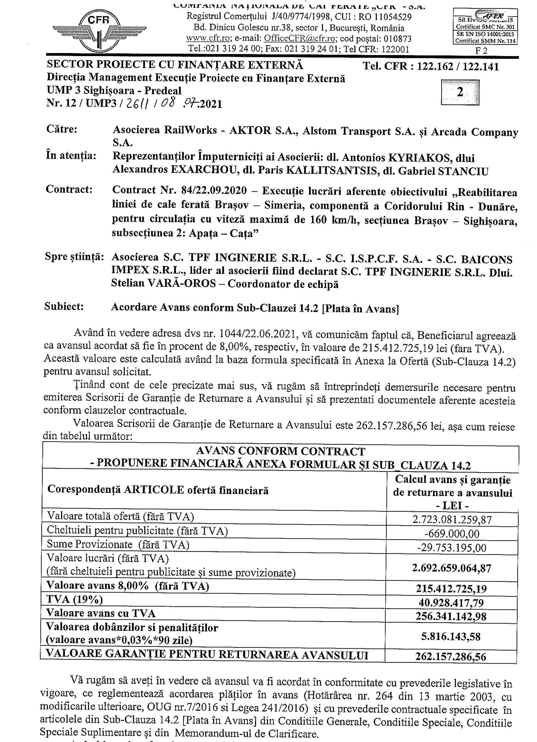 PS2: Am primit si documentul initial care a generat raspunsul socant dat de juristii CFR Calatori catre compania Aktor: