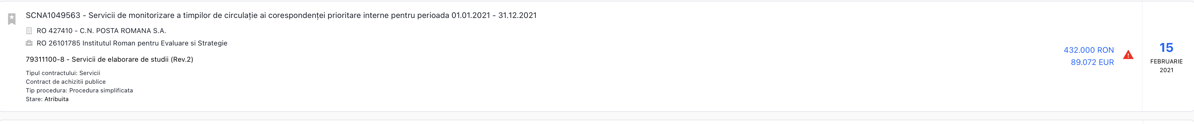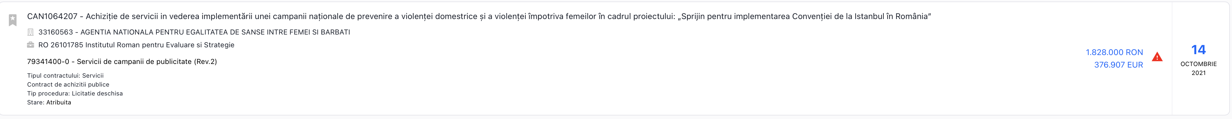 Pe 2021, dacă punem și licitația de la Poșta Română de 90 000 de euro câștigată în 15 februarie 2021, atunci înseamnă că IRES a câștigat anul asta licitații în valoare de 760 000 de euro.