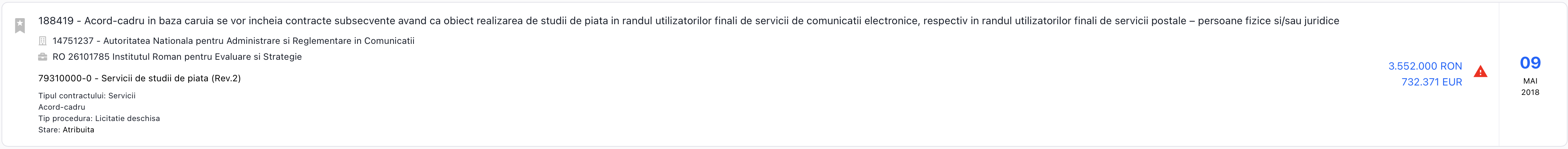 De ce spun că ANCOM e partener vechi de dat licitații cu dedicație către IRES? Pe când ANCOM era condus de Sorin Grindeanu, IRES a caşcavalit de la ANCOM un contract de servicii de studii de piață de circa 700 000 de euro.