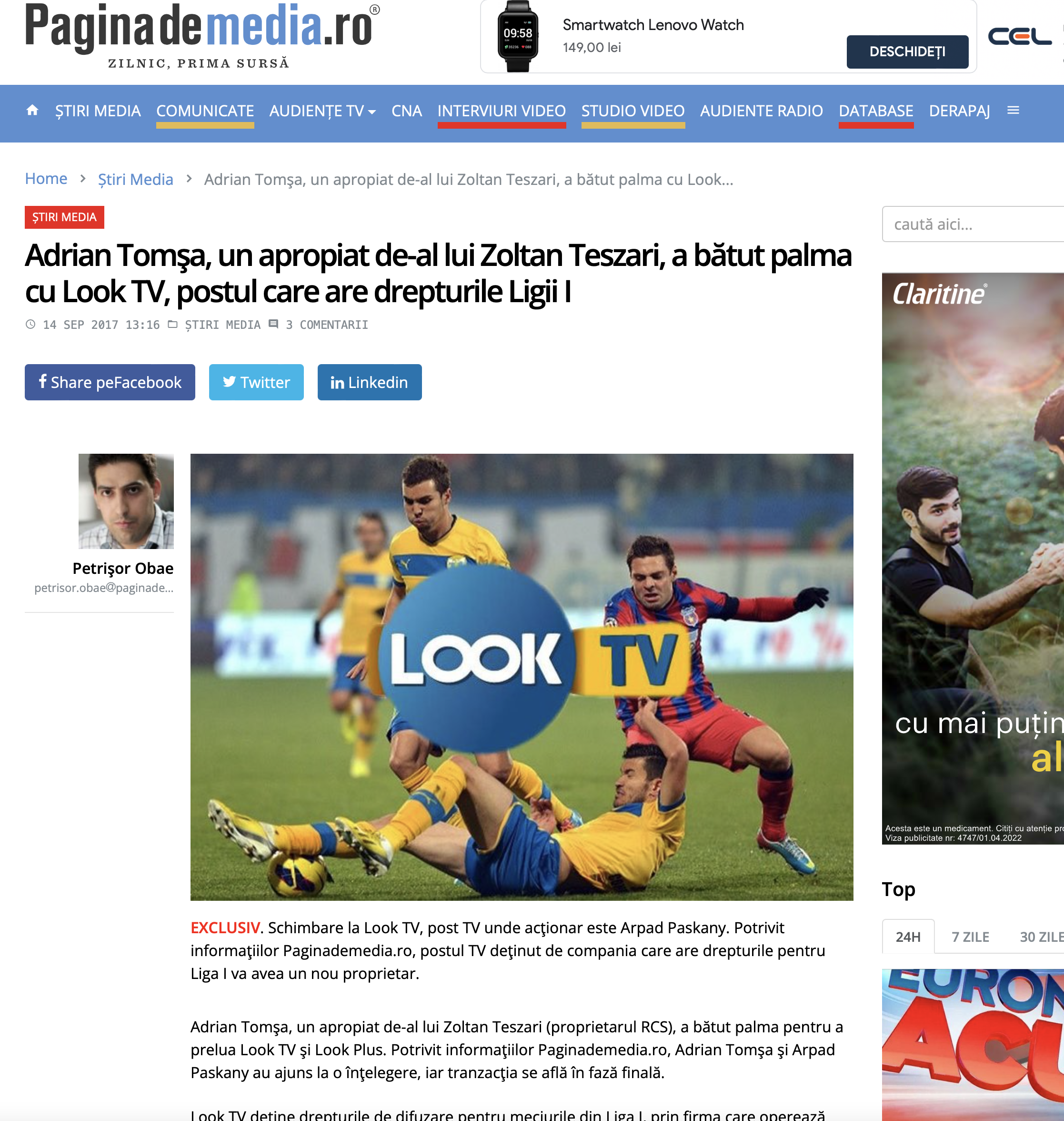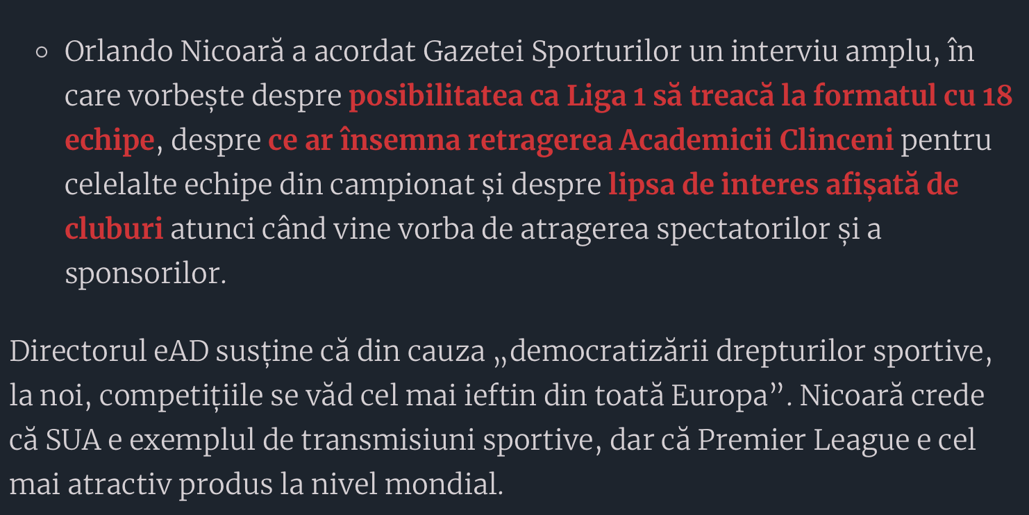 Ia uitați și cum, apropo de Consiliul Concurenței, firma lui Tomșa își permite să facă aprecieri despre formatul campionatului Ligii 1 sau despre abonații români, prin gura spalacitului de Orlando Nicoară: