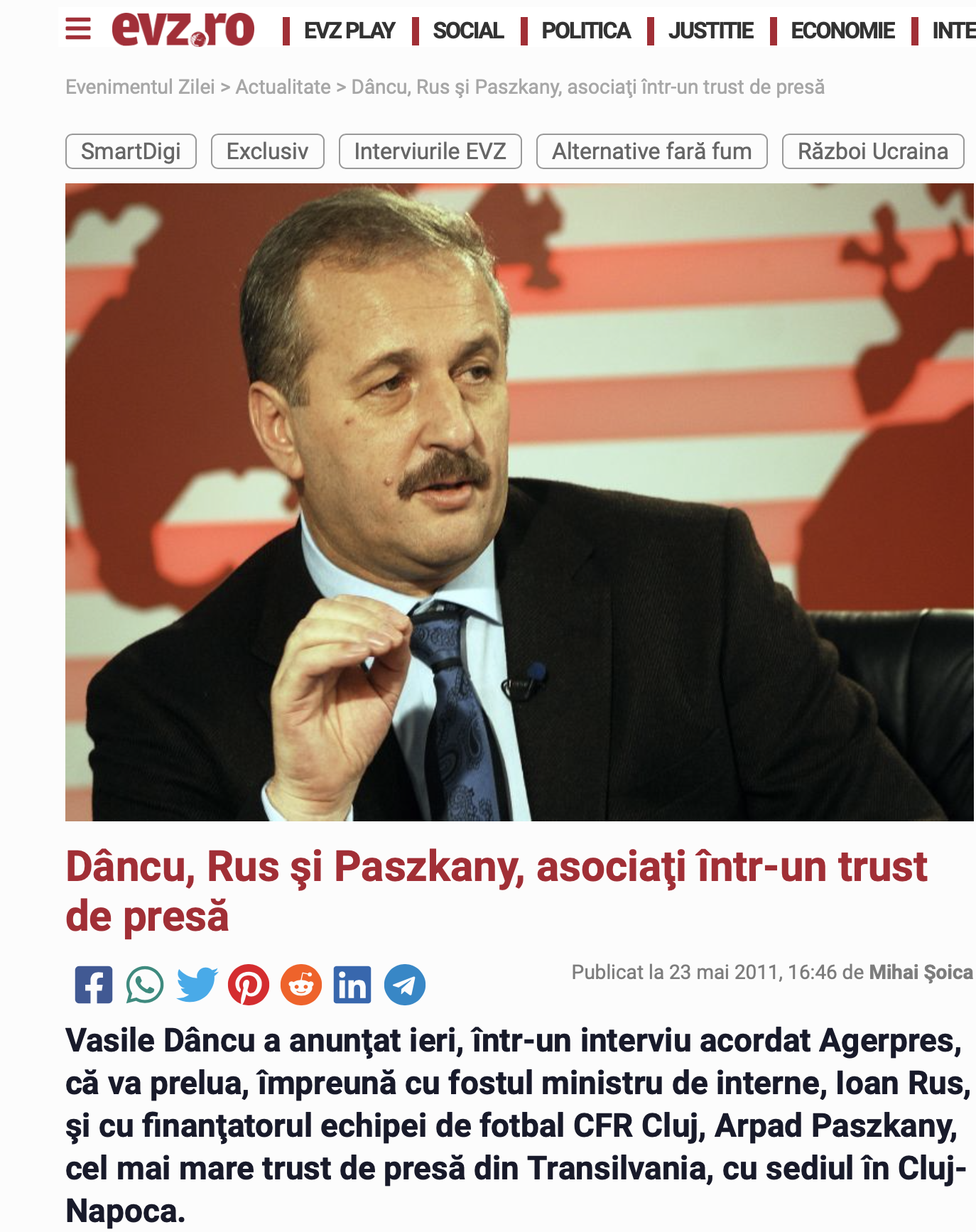 Dețin informații certe că la întâlnirea din 26 aprilie a.c. a conducerii României, cand Nicolae Ciucă, Marcel Ciolacu și ministrul de Externe Bogdan Aurescu s-au întâlnit în Ucraina cu Zelensky și cei mai importanți oameni din guvernul ucrainean, staff-ul românesc a avut inițiativa ilegală și total neconcurențială de a negocia intrarea în Ucraina a companiei private RDS-RCS atunci când războiul se va fi sfârșit.