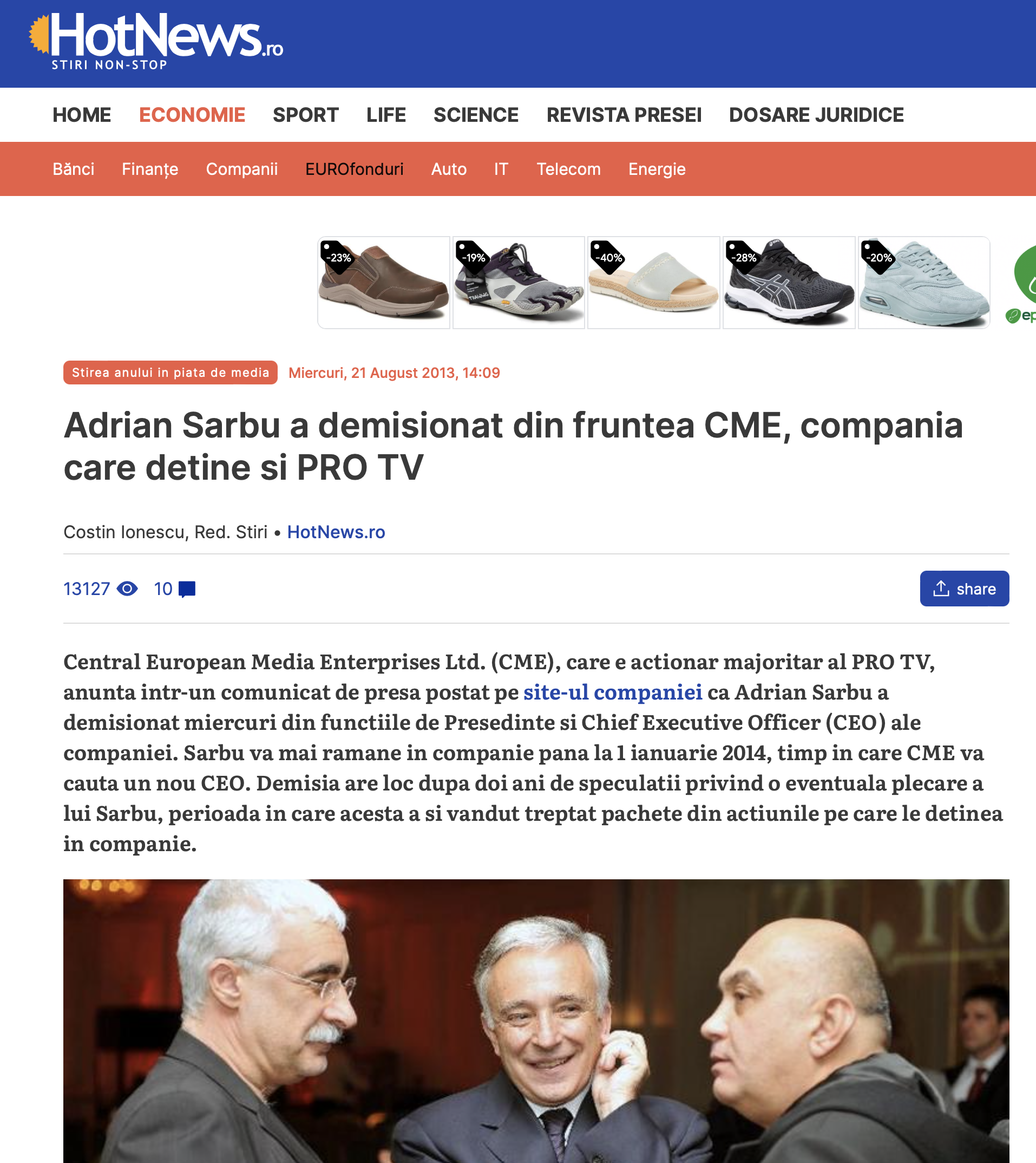Socoteala de la negocieri s-a dus naibii spre finele lui 2013, când Sîrbu a fost "demisionat" de CME pentru rezultatele proaste din grup, pierderi imense: bătrânul Sîrbu primise o pălărie prea mare și părea în spatele vremurilor. Asta a fost o veste proastă pentru Paszkany, căci își lua adio de la un posibil exit în favoarea CME.