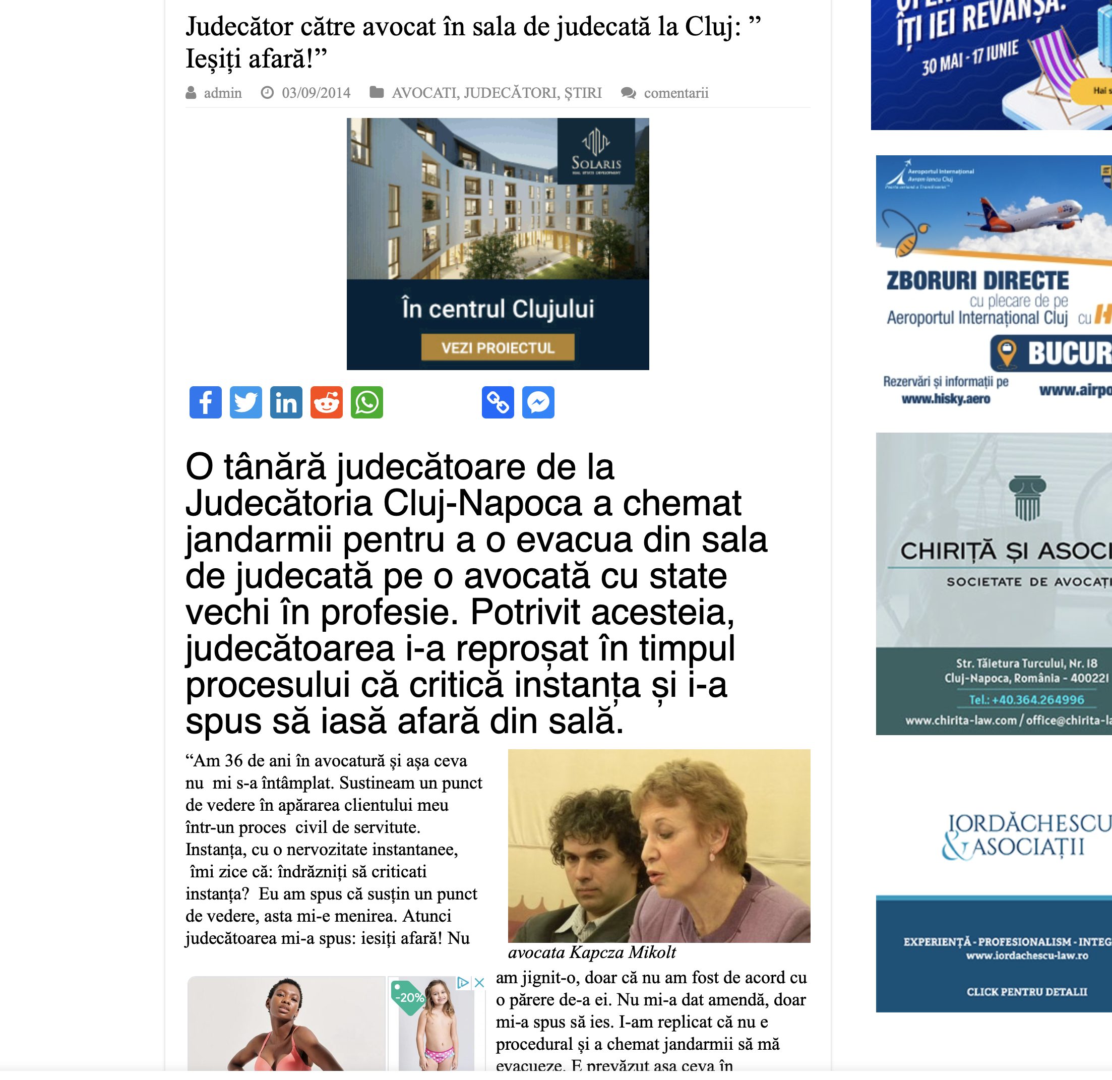 Ce frapează foarte tare în cazul reducerii drastice a daunelor deja câștigate în Tribunal de Aurel Mureșan este celeritatea puturoasă cu care aceste două judecătoare s-au mișcat. Într-o zi, doamnele judecător au reușit totul doar la un singur termen, inclusiv să dea sentința, de aia vă zic că e vorba despre o ură a magistraților clujeni față de presă.