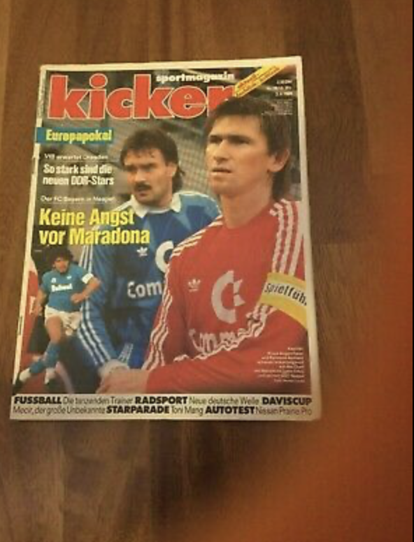 Când am ajuns acasă m-am apucat să răsfoiesc un Kicker Sport din colecția de odinioară a bunicului meu, care în anii `80 primea de la un prieten ziare și reviste nemțești. Publicația prefața finala Cupei UEFA din mai 1989, Napoli-VfB Stuttgart, și relata pe larg despre semifinala câștigată de italieni în fața lui Bayern München.