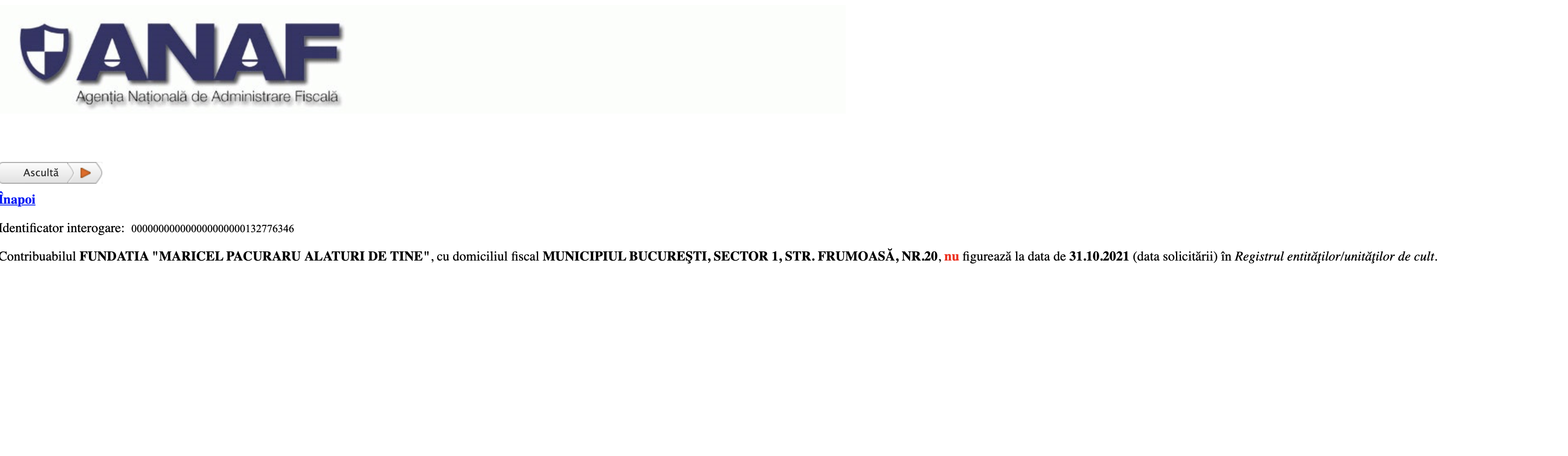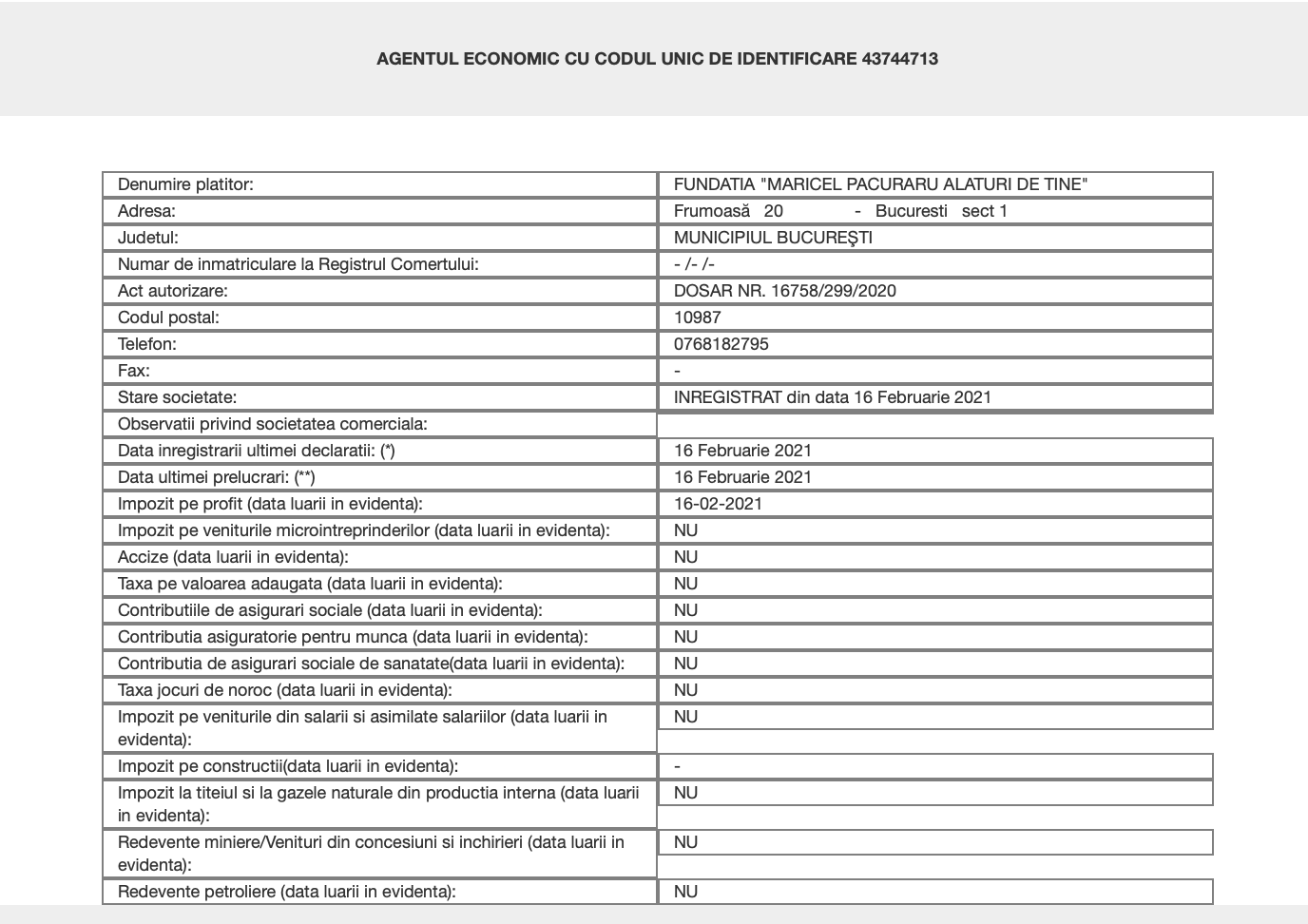 Maricel Pacuraru, patronul postului de stiri Realitatea TV, si-a tras o fundatie cu nume interesant: Fundatia "Maricel Pacuraru alaturi de tine", inregistrata la ANAF in februarie 2021, dar neinregistrata in Registrul entitatilor/unitatilor de cult.