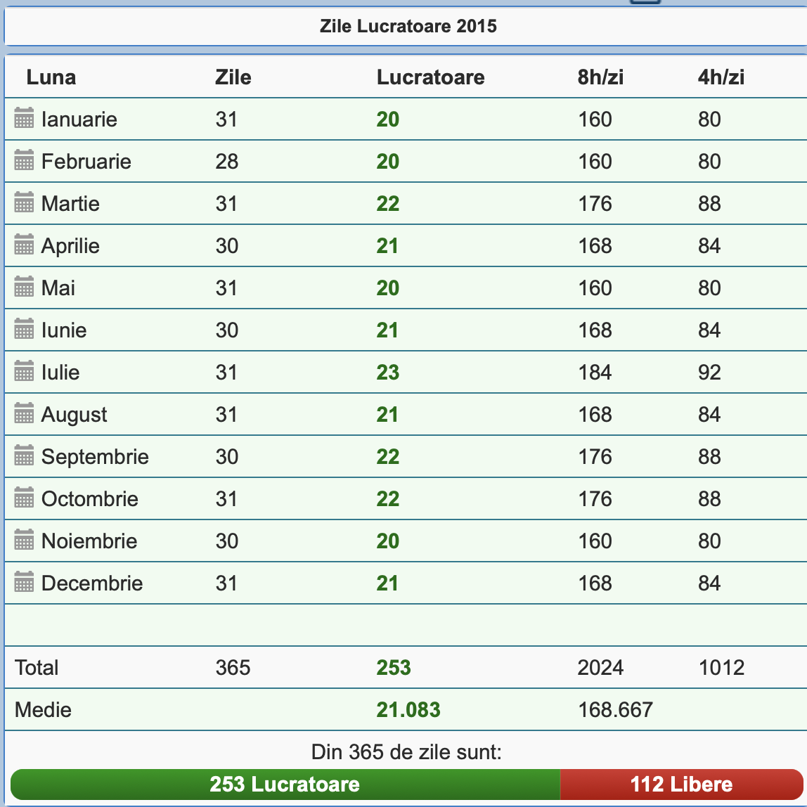 2015 - 251 de zile lucrate din 253 lucratoare. Obiectiv atins.
