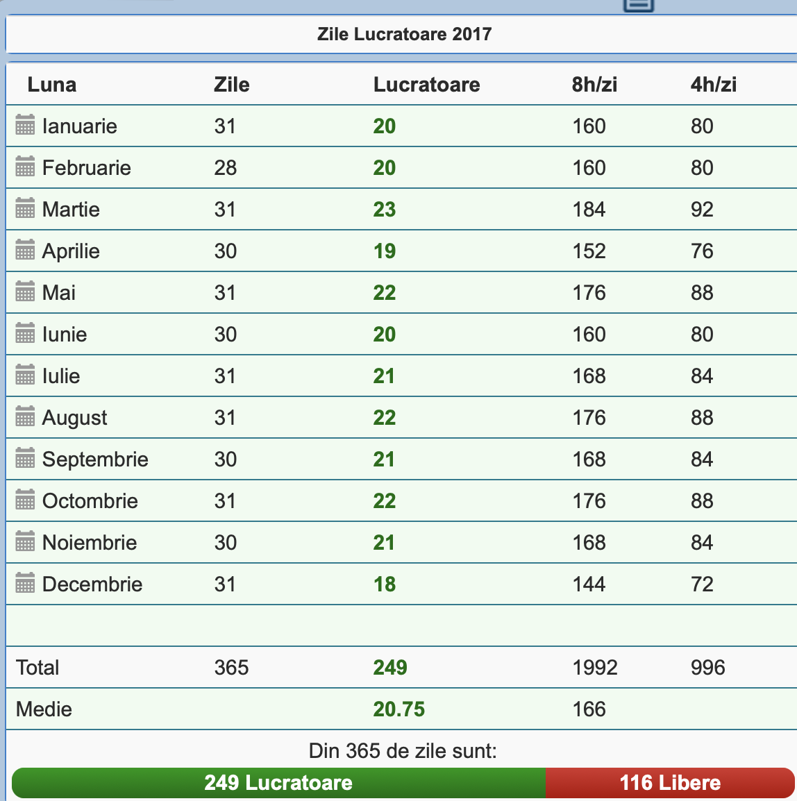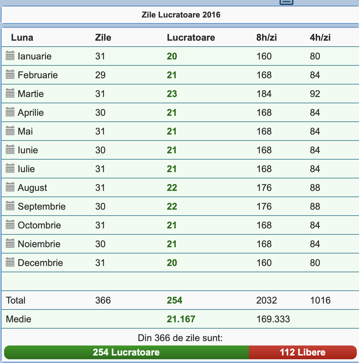 2016 - 250 zile lucrate din 254 lucratoare. Obiectiv atins.