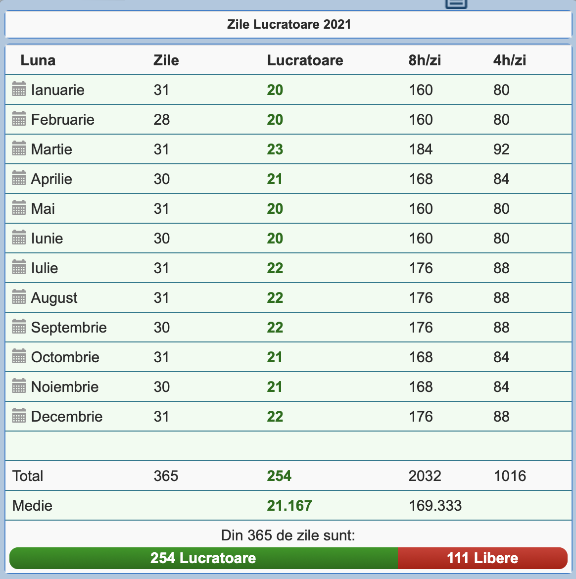 ianuarie 2021 - 12 zile lucrate. Al doilea an pandemic.