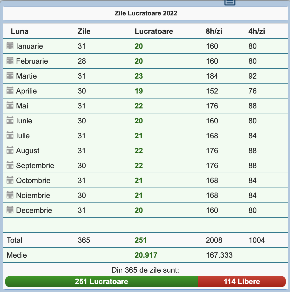 mai 2022 - 11 zile lucrate. Zzzzz.