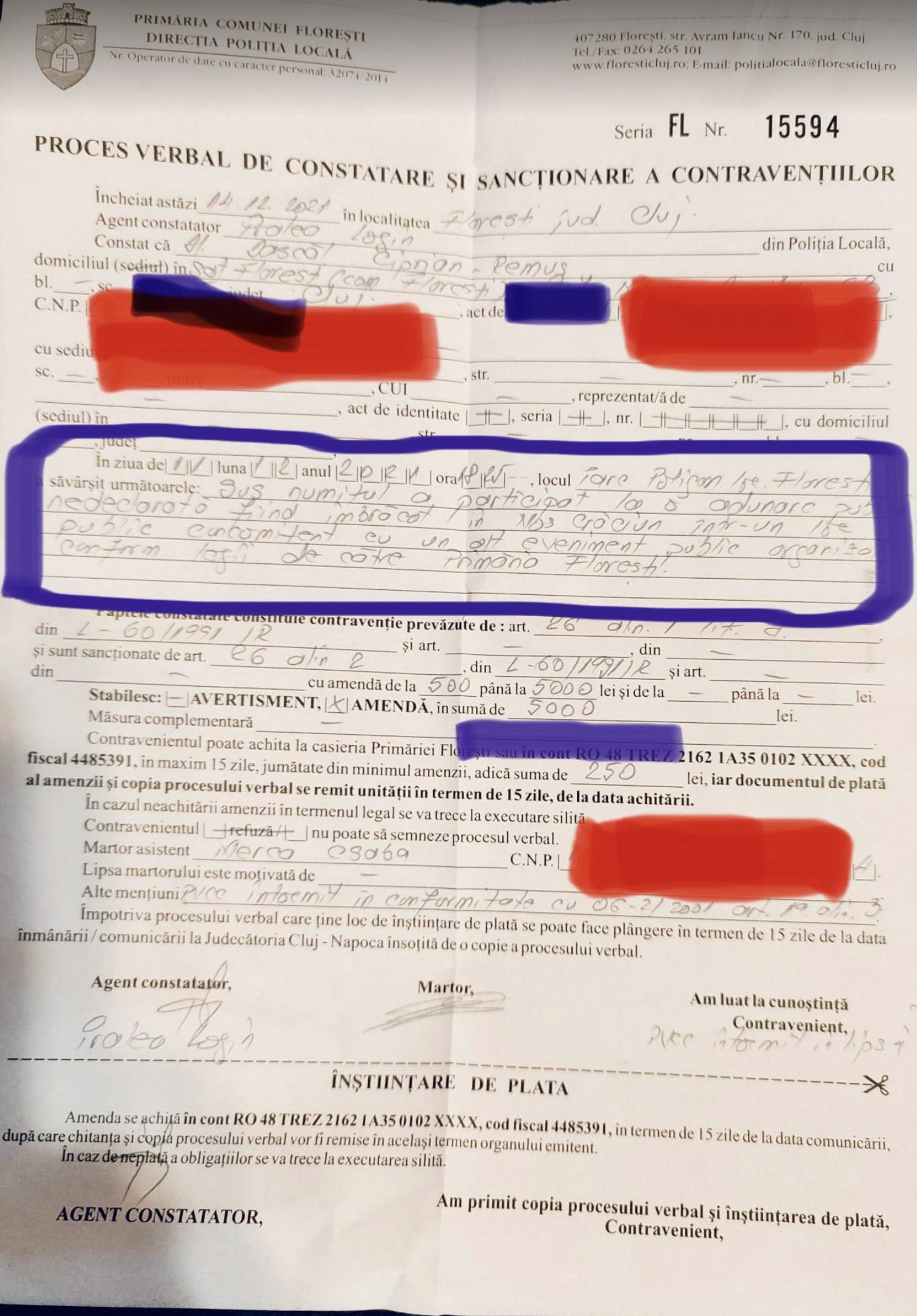 Ciprian: Păi, așa s-a ajuns, ca să aibă acoperire. De ce vă spun? Pentru că, la un moment dat, un consilier local, Marius Todoran, a avut curajul să spună: „Dumneavoastră știți ce s-a întâmplat la Florești? A fost amendat Moș Crăciun. " Președintele de ședință era Gabi Crișan, tot consilier din partea PNL, care s-a scăpat el așa și spune: „Da, dar știți de ce a fost amendat?" De parcă eu am venit aici să, nu știu, la furat sau, știu eu, la tăiat copaci pe aici, prin parc. Deci, ei știau în ședință de ce am fost eu amendat. Nu mi se pare normal să știe primăria...