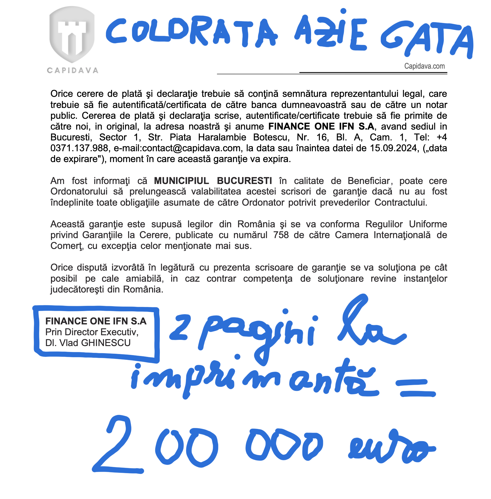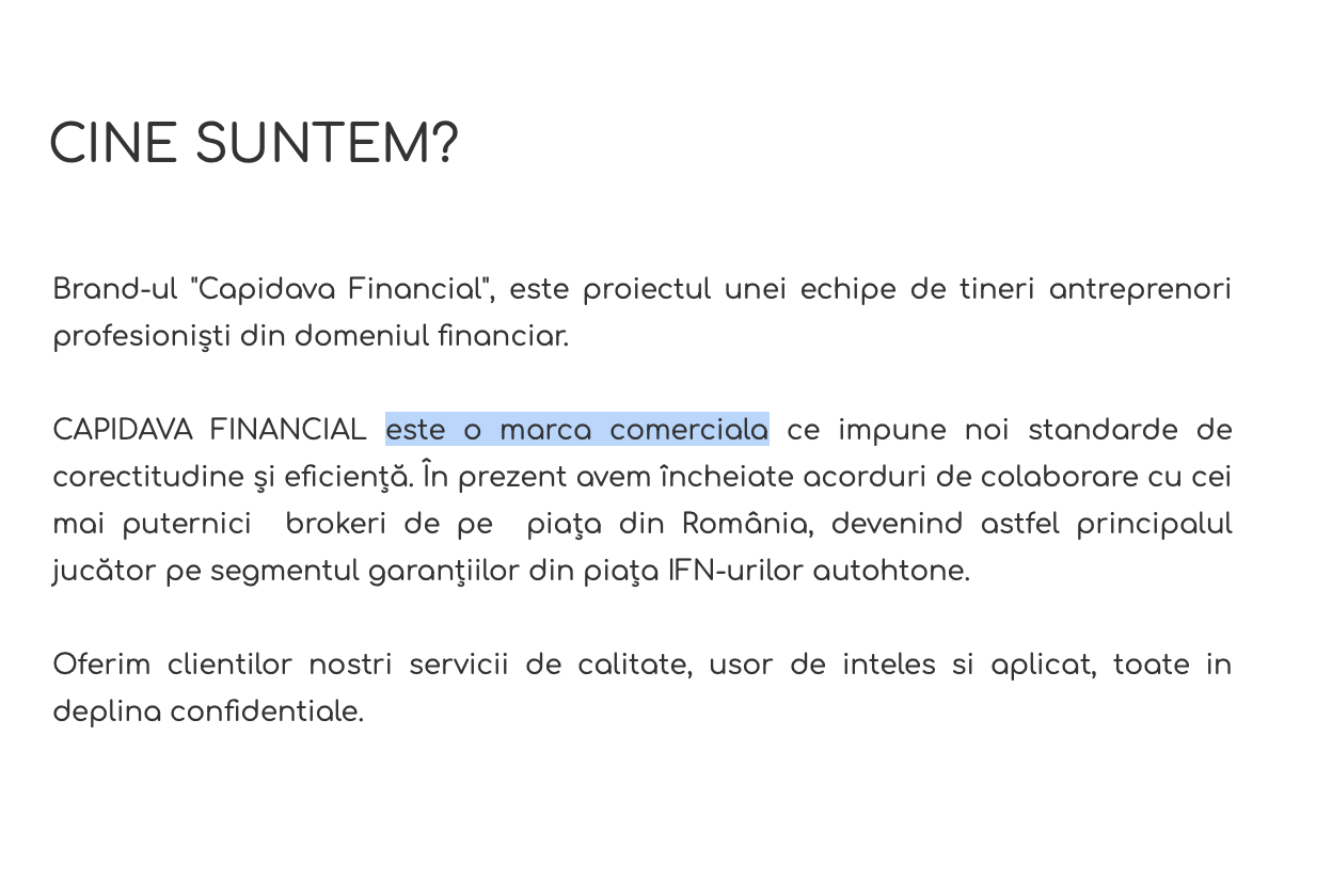 În ancheta stricsecret.ro de ieri pe care o puteți citi AICI, vă relatam cum funcționează ciordeala financiară Capidava: Vlad Ghinescu, Alex Floroiu și acoliții lor folosesc brandul Capidava înregistrat la OSIM ca o umbrelă pentru mai multe societăți de tip IFN prin intermediul cărora emit, efectiv la imprimantă, niște hârtii fără nicio valoare, dar despre care ei susțin că sunt scrisori de garanție.