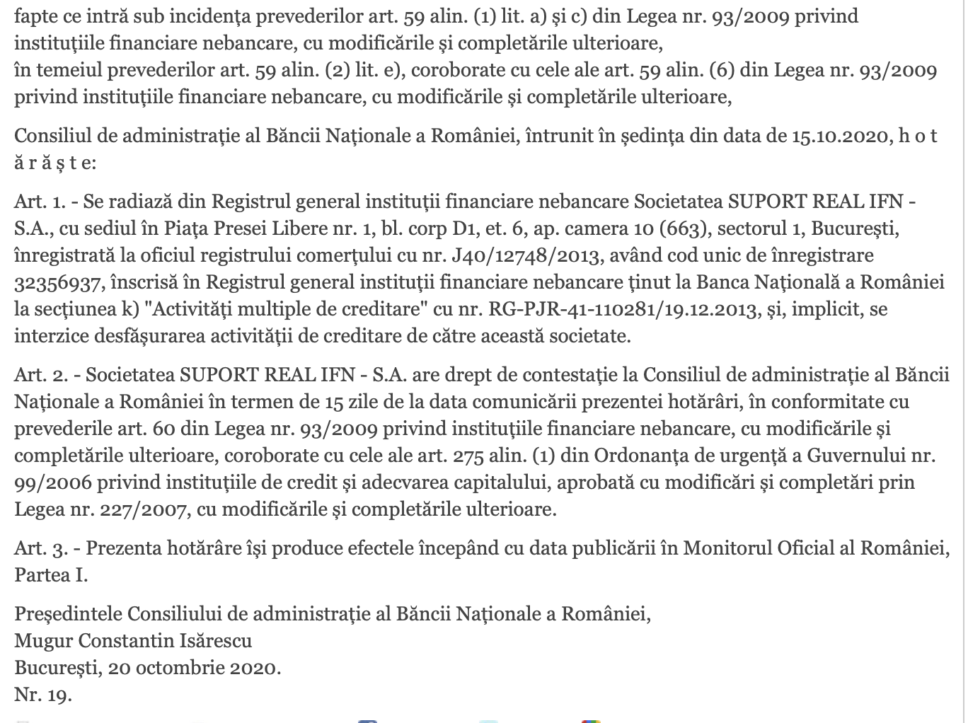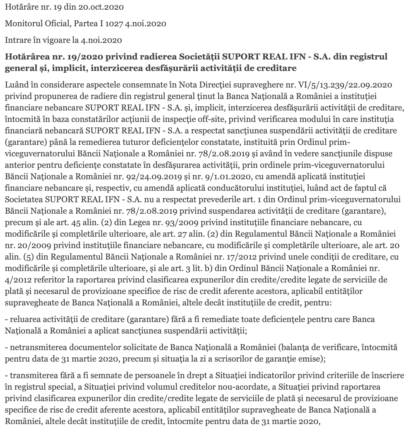 Nasol însă că în octombrie 2021 când șmenarii Capidava se duceau să negocieze cu Astra Vagoane, susținuți de PNL, detaliile și comisioanele scrisorii de garanție, BNR a intervenit abrupt și a decis să radieze Suport Real IFN, care funcționa sub marca Capidava Financial. Motivul radierii a fost nerespectarea unui ordin al BNR, privind remedierea deficiențelor constatate în desfășurarea activității.