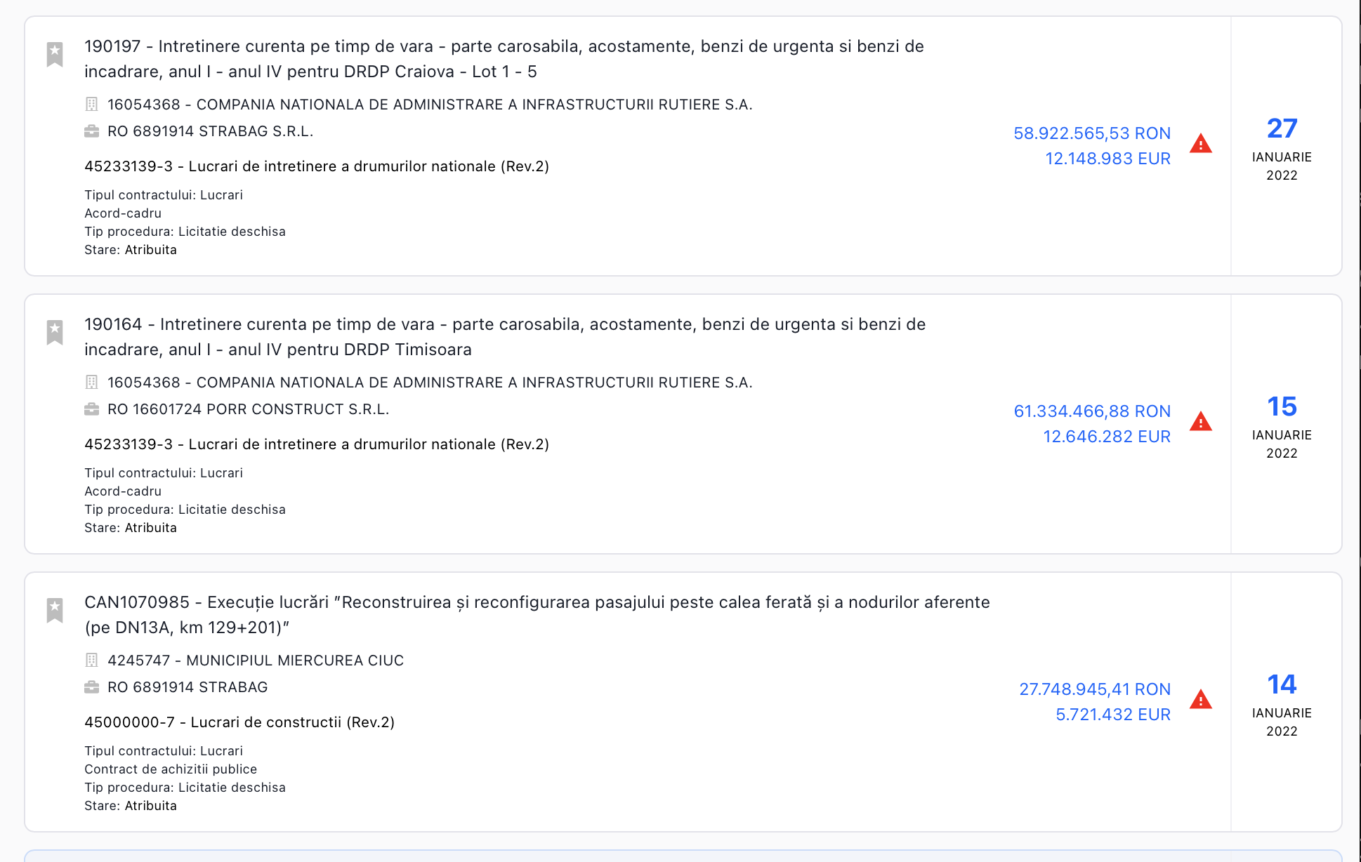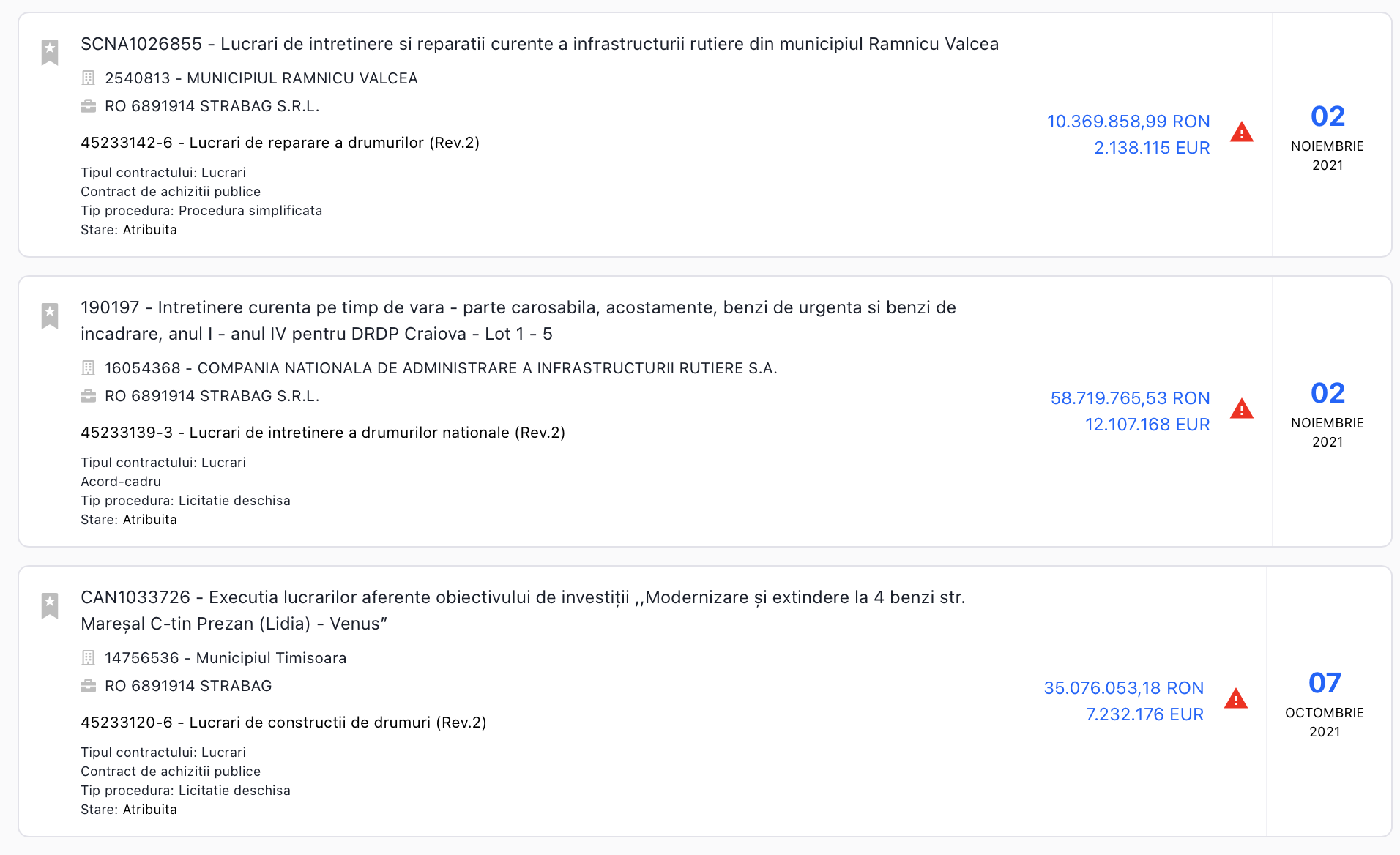 În România, prin subisidiara STRABAG și prin Antrepriza de Reparații și Lucrări Cluj (ARL), doar în ultimele 4 luni de zile, Deripaska a "împușcat" licitații publice de 276 de milioane de euro, luând proiecte licitate de CNAIR, dar și lucrări importante din diverse municipii reședință de județ ale patriei.