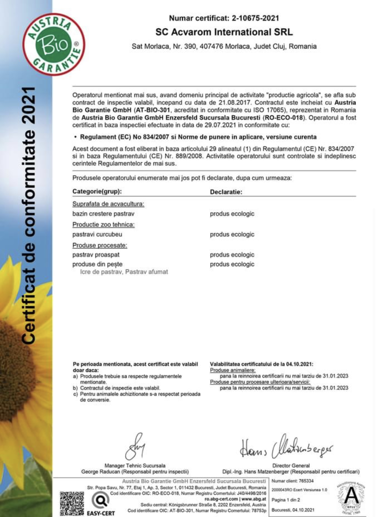 De ce spunem că certificatul pare o țeapă, scoasă la imprimantă în pripă? Pentru că firma Acvarom prin care se operează păstrăvăria Bolloga nu figurează pe site-ul Ministerului Agriculturii și Dezvoltării Rurale, deși, chipurile, certificatul ecologic a fost emis în octombrie de către Austria Bio Garantie.