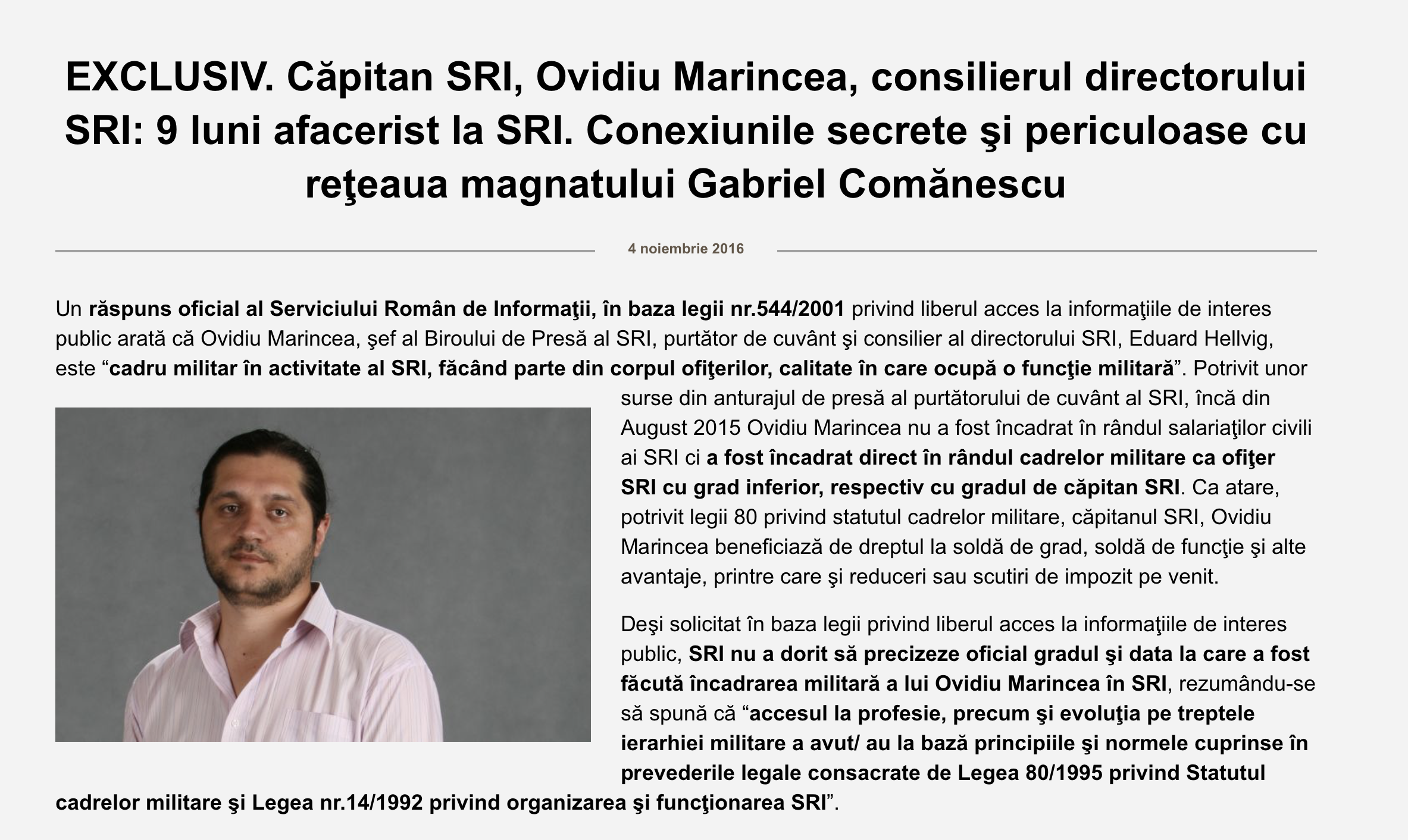 Desigur, noi nu am uitat nici că Ovidiu Marincea era acoperitul din presă al SRI și că, mai apoi, a devenit purtător de cuvânt al SRI, de aia avem încredere că dezvăluirile de mai sus despre Buzăianu erau tare bine documentate.