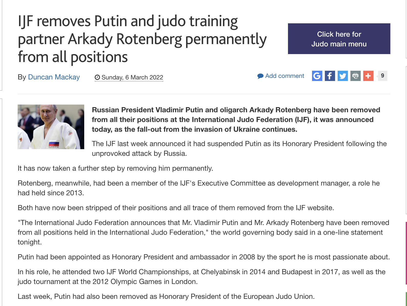 Adică gata, Vizer l-a suspendat pe Putin și pe Rotenberg din orice poziție deținută în FIJ, și pe sine nu se vede?