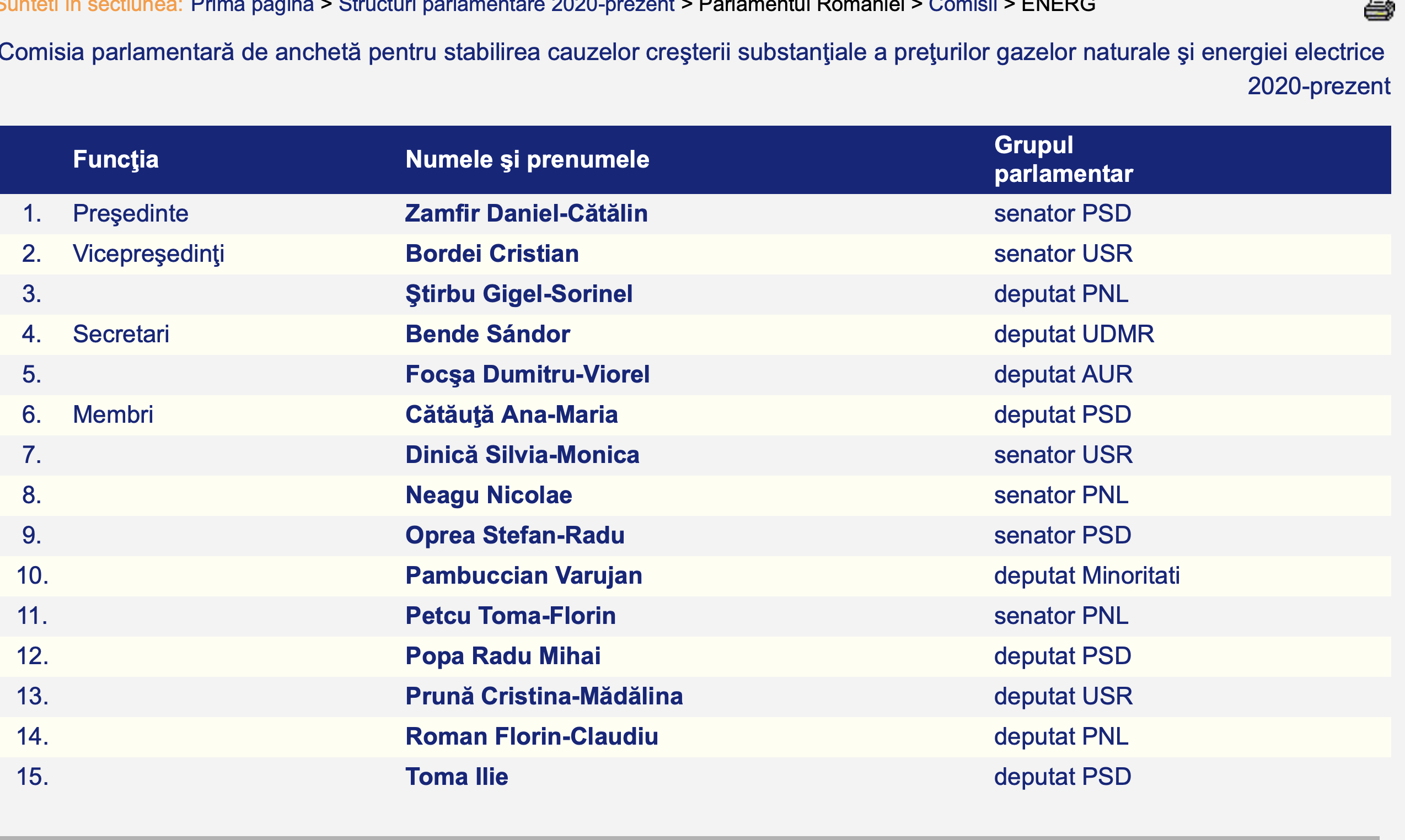 As you can see, the commission also included some heavy names who are in the Government today: Bode is the Minister of the Interior, Virgil Popescu is the Minister of Energy today, Tanzcos Barna is the Minister of the Environment today.