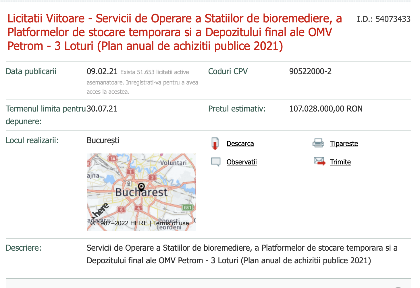 As I told you, the auction organized by OMV Petrom is of colossal importance, because the decontamination operations of hazardous and non-hazardous waste, if done unprofessionally, can have a devastating impact on the environment.