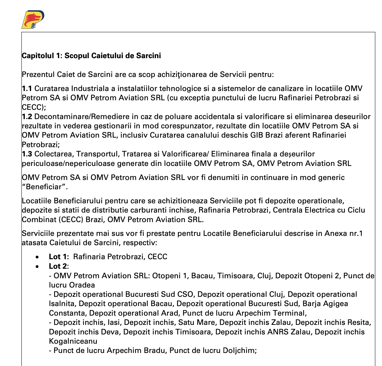 In a few days, the giant OMV Petrom, more precisely some tricksters from the management of the corporation, are preparing to slam one of the most important tenders of the company: "Purchase of Services for Industrial Cleaning of technological installations, sewage systems, Decontamination/Remediation, and Collection , Transport, Treatment, Recovery, Final Disposal of hazardous and non-hazardous waste".