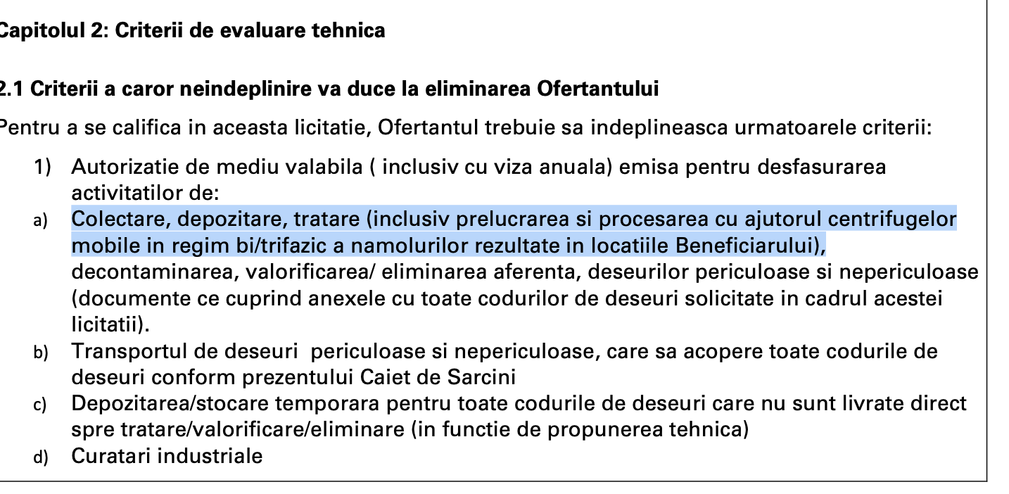 Așa cum vă spuneam, licitația organizată de OMV Petrom este de o importanță colosală, căci operațiunile de decontaminare a deș̦eurilor periculoase și nepericuloase, dacă sunt făcute neprofesionist, pot impacta devastator mediul înconjurător .