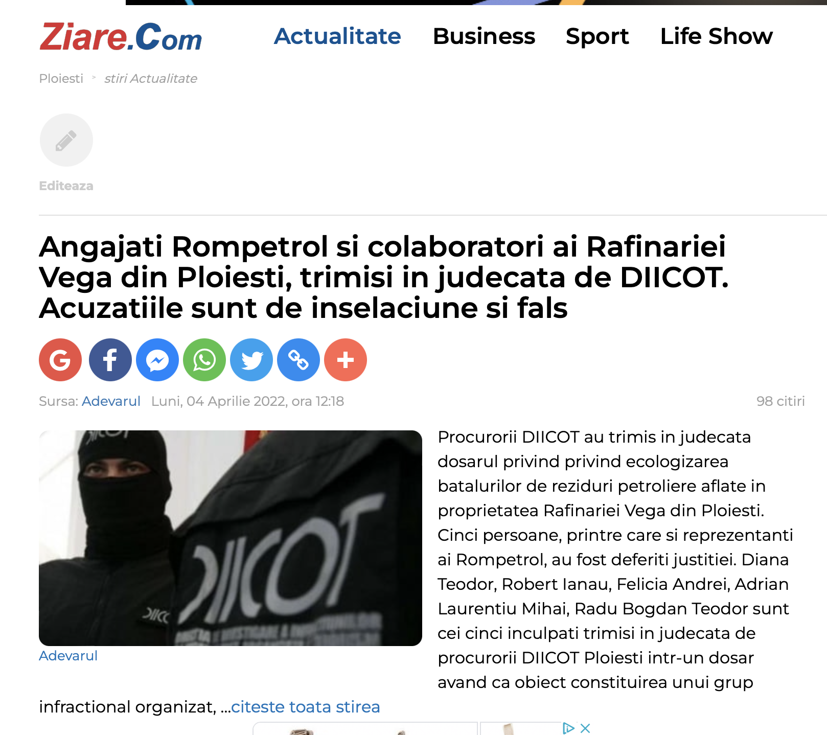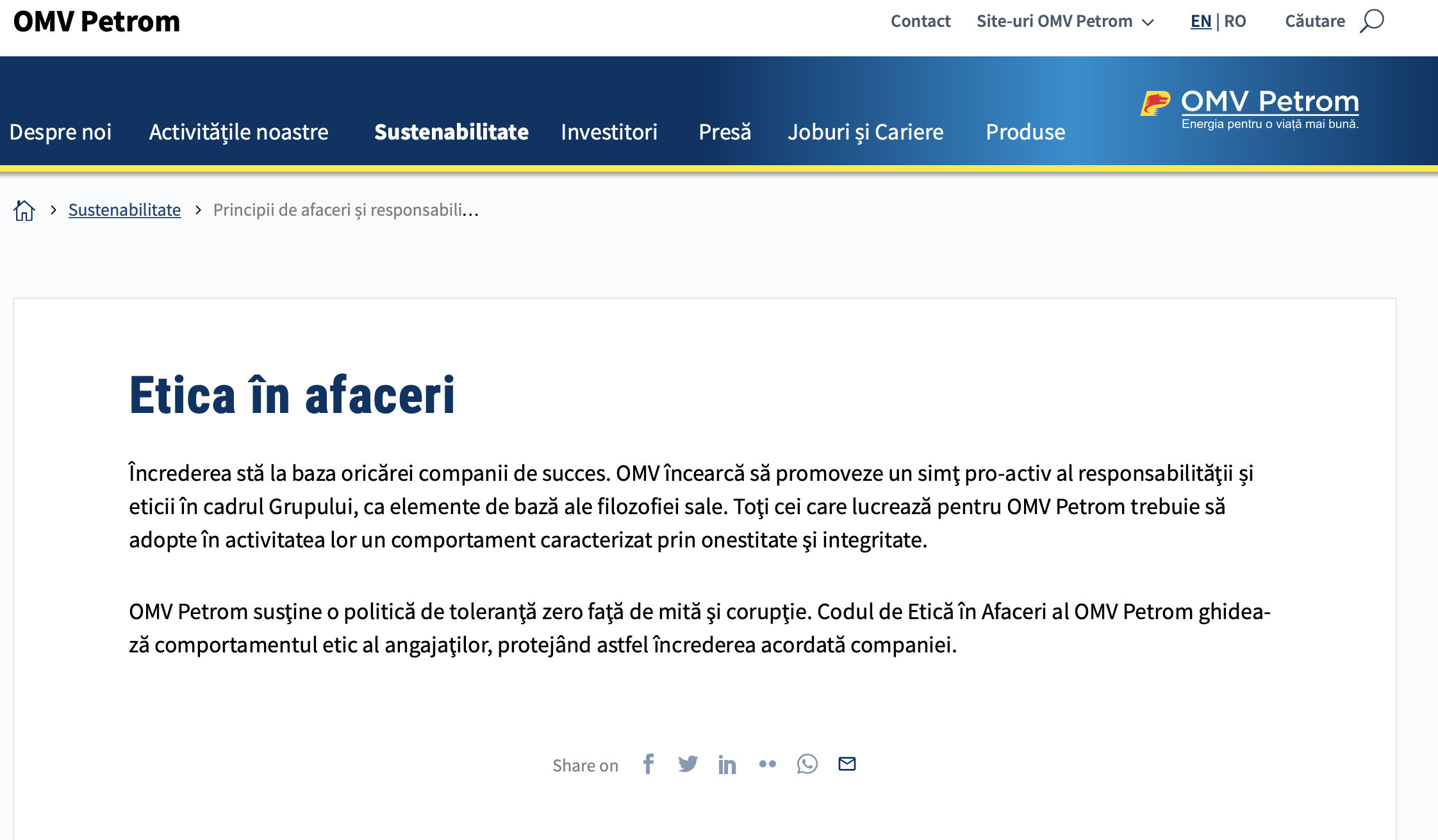 Nu de altă, dar am citit pe site-ul OMV Petrom România o chestie cu etica și cu corupția...
