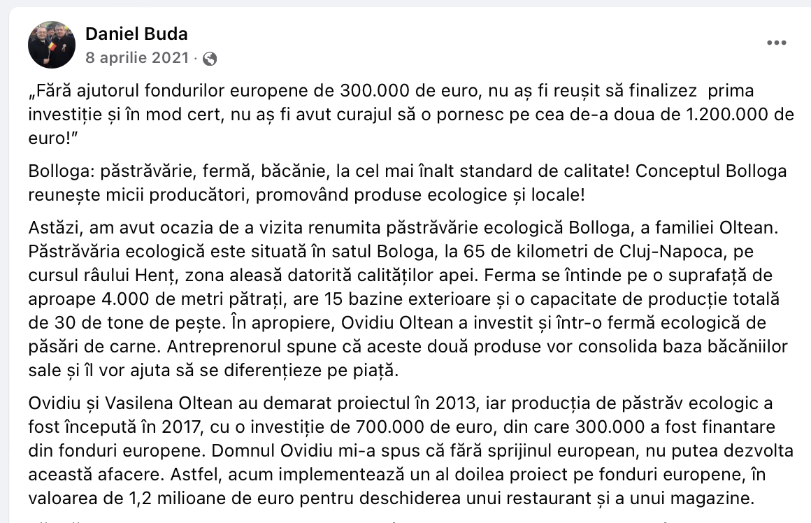 Cititorii noștri au început să investigheze și ei, pe cont propriu, ce se întâmplă cu păstrăvăria Bolloga. Oamenii au fost impresionați și de mărturia tatălui patronului, Liviu Oltean, trebuie să recunoaștem una șocantă. Apoi s-au dat seama că am avut dreptate când am afirmat că soții Oltean au construit o mașinărie de minciuni in care au atras presa, artiști și vedete, ba chiar și politicieni precum europarlamentarul clujean, Daniel Buda, cel care a pus "botul" la blabla-urile familiei Oltean.