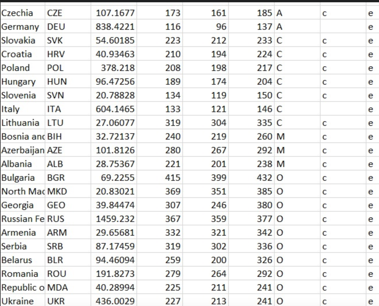 Să trecem la cifre. Există țări și țări, nu poți compara China cu Vaticanul, așa că țările care sunt doar cu numele țări trebuie eliminate din statistică, 5 morți în Vatican înseamnă 500 de morți la 100000, echivalentul în China este de 7 milioane de morți, nu se poate compara, pentru că Vaticanul nu e semnificativ statistic, e altă lume, deci trebuie eliminate din studiul în cauză. Eliminăm toate țările care au o populație sub 2 milioane. Dintr-o populație totală de 7.798.153.992 ajungem la o populație de 7.771.061.495 adică am eliminat 0.35% din populație, nesemnificativ statistic, dar am eliminat țările care pot induce în eroare printr-un accident statistic, cum putea fi Vaticanul.