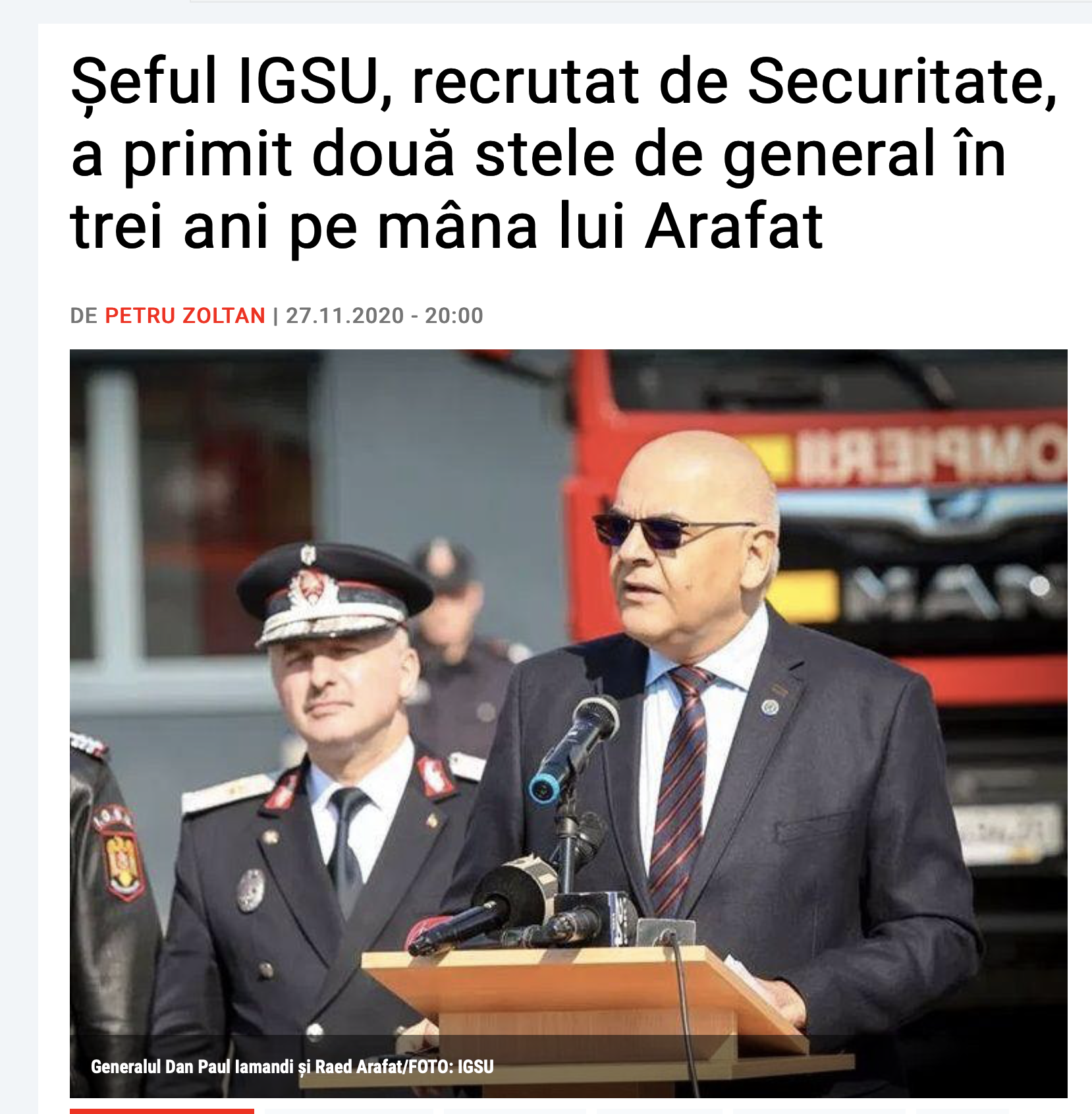Sursele Newsweek din cadrul Ministerul Afacerilor Interne au declarat, sub protecția anonimatului, că propunerile de avansare ale comandorului Cătălin Dache și generalului Dan Paul Iamandi au fost asumate direct de Raed Arafat, secretar de stat în Ministerul Afacerilor Interne și șeful Departamentului pentru Situații de Urgență.