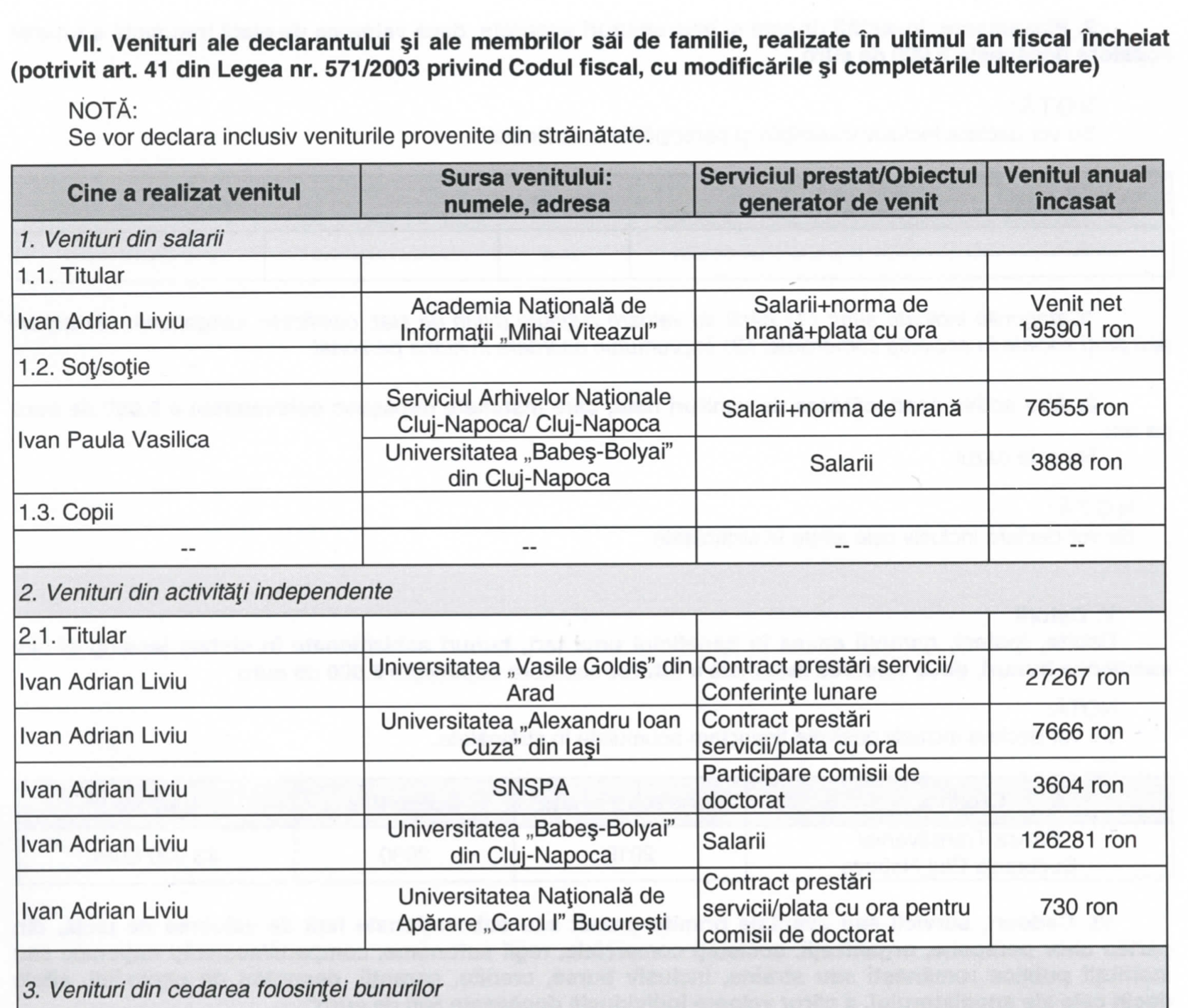 Dar nu musai prin asta frapeaza noua sa declaratie de avere. Ca sinecuristi am mai vazut. Ci prin faptul, UNIC in istoria Romaniei moderne, ca Adrian Ivan este rectorul Academiei SRI, rectorul unei universitati, dar mai incaseaza un salariu PLIN, deloc neglijabil, si de la UBB. Adica nesimtire crasa, puturoasa, care dovedeste un sinecurism de nivel academic.