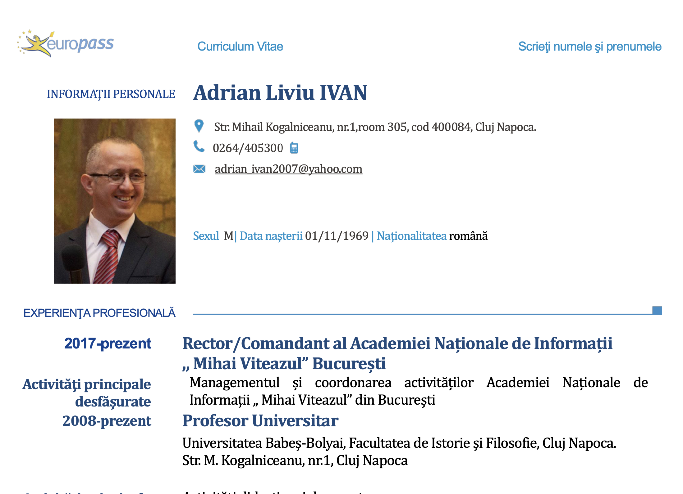 "La începutul anului universitar 2016-2017, la vârful Şcolii Doctorale a Academiei Naţionale de Informaţii a SRI a fost numit prof. univ. Adrian Ivan, deşi acesta nu era conducător de doctorate la şcoala respectivă, aşa cum cere legea. Numirea s-a făcut, deşi funcţia aceasta este echivalenta celei de director de departament, funcţie pe care Adrian Ivan o ocupa la o altă universitate, respectiv la Universitatea „Babeş Bolyai”, din Cluj-Napoca.