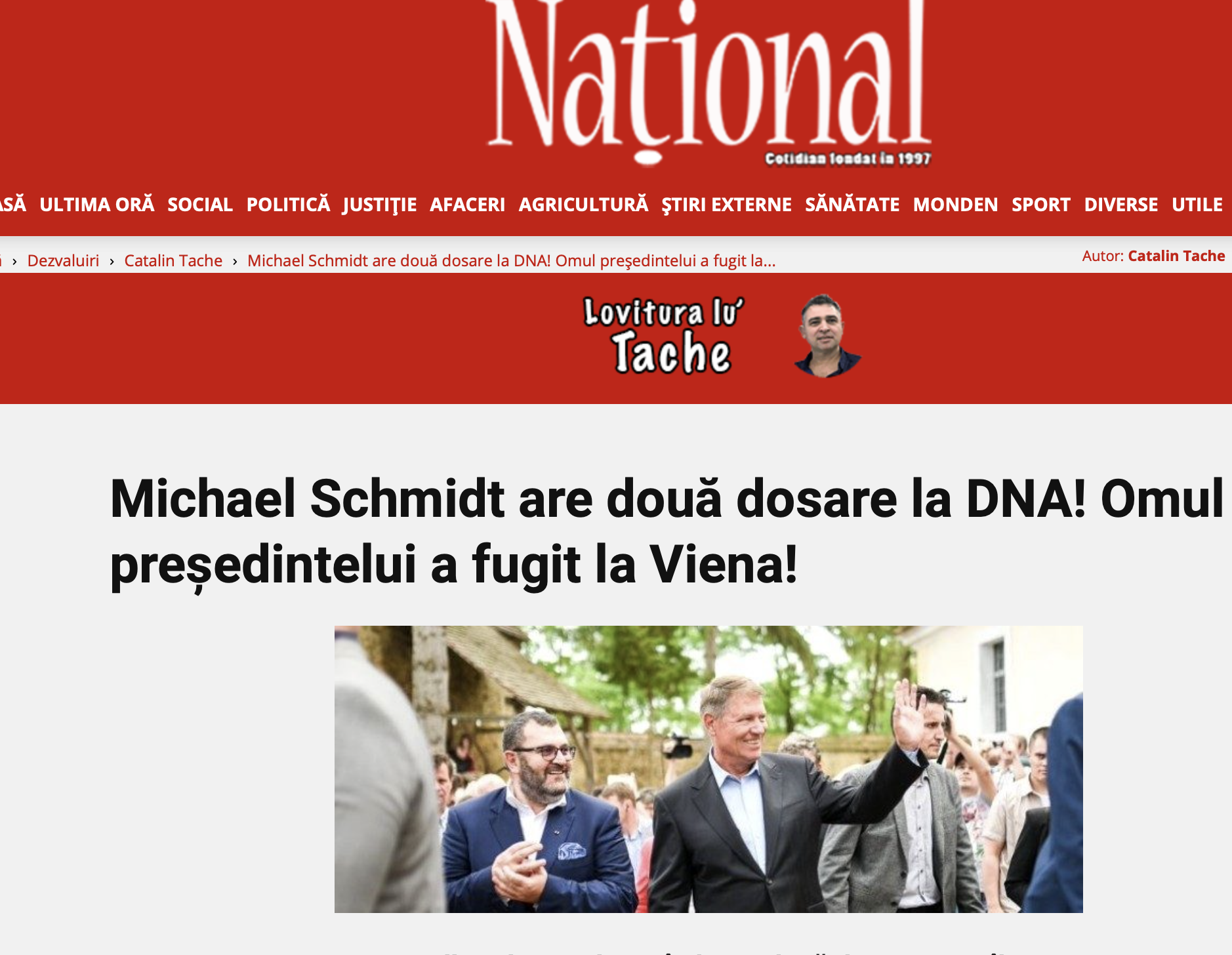 Michael Schmitt a stat o vreme ascuns la Viena, și a revenit abia recent, de cateva luni în țară, asta pentru că niște procurori pezevenghi se pregăteau să-i dea omorul în România. Cu multe presiuni și intervenții, atât de la Cotroceni, cât și din partea unor grei ai statului austriac, Michael Schmidt a fost scăpat și de aceea era nevoie ca președintele să-l reafirme în spațiul public românesc, să-l repoziționeze în capul securiștilor ca un semnal de alarmă, ca aceștia să nu se mai țină de protejatul sau. De aia, l-am vazut pe Iohannis fugind la Criț pe 1 august.