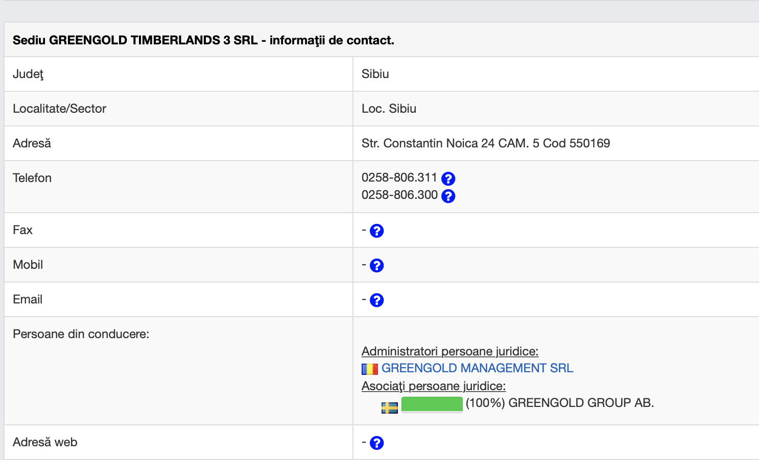 Dar unde este sediul Greengold Timberlands 3 SRL care se ocupa cu "managementul" (activitati de consultanta pentru afaceri si management) a 30 000 de hectare de paduri din Romania?